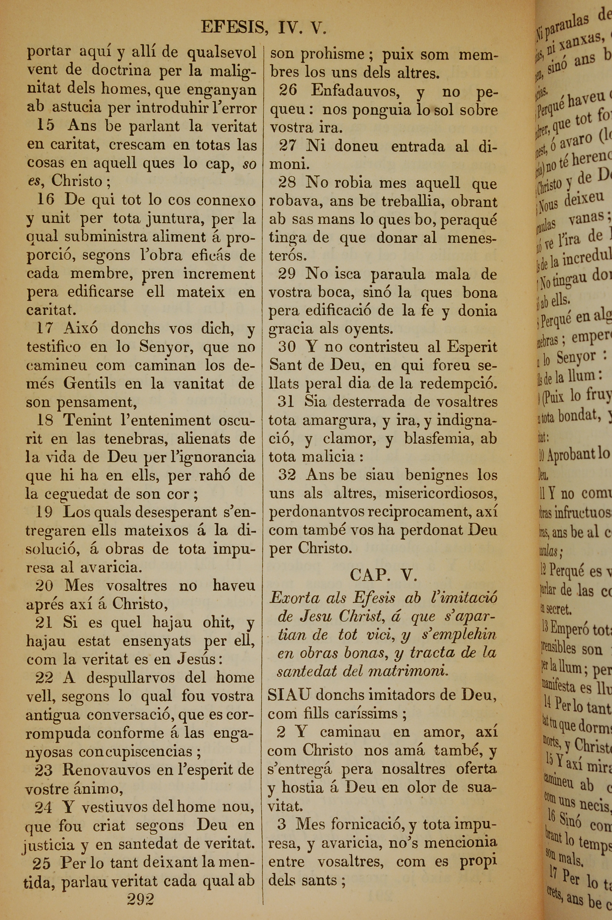 1835年加泰羅尼亞語新約全書 以弗所書 4 章 15 節到 5 章 3 節