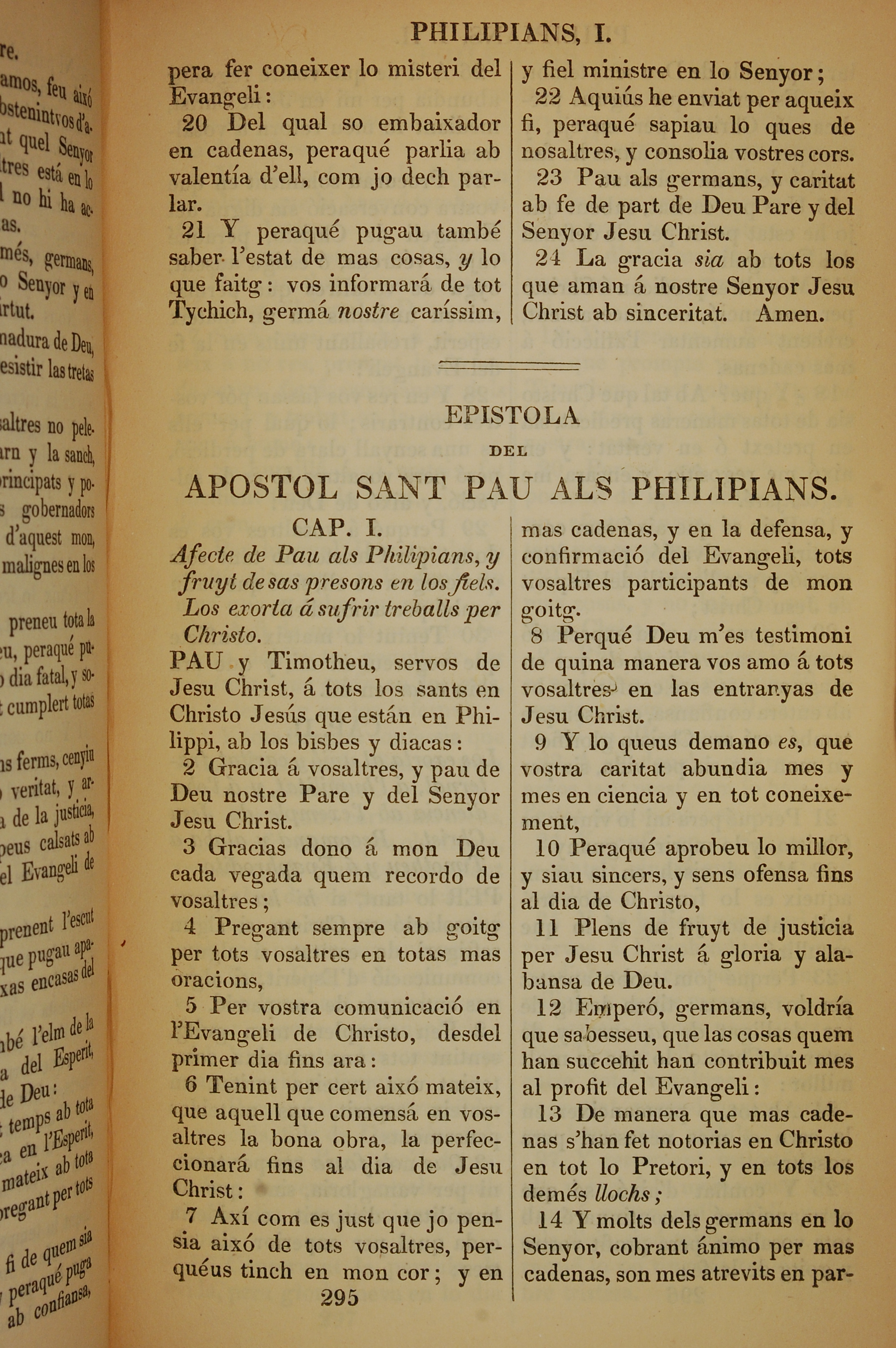 1835年加泰羅尼亞語新約全書 以弗所書 6 章 20 節到 6 章 24 節