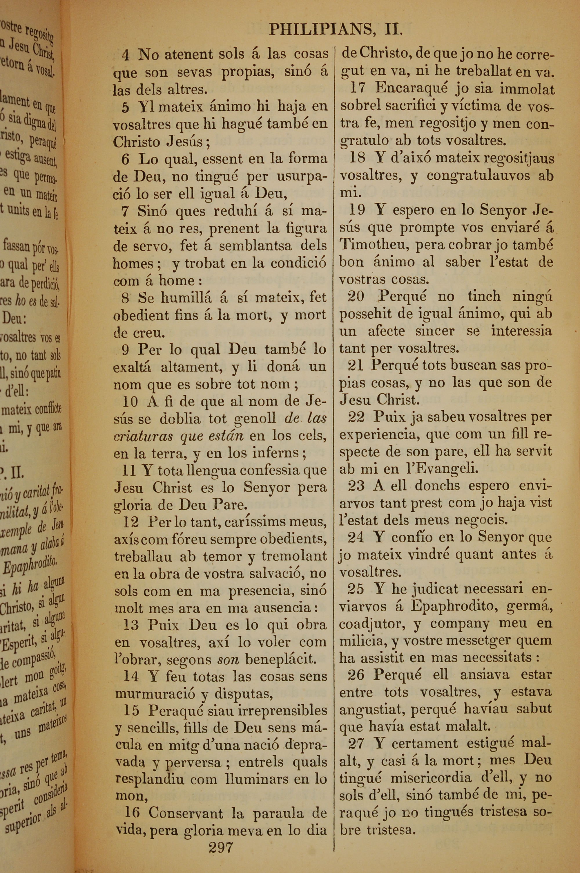 1835年加泰羅尼亞語新約全書 腓立比書 2 章 4 節到 2 章 27 節