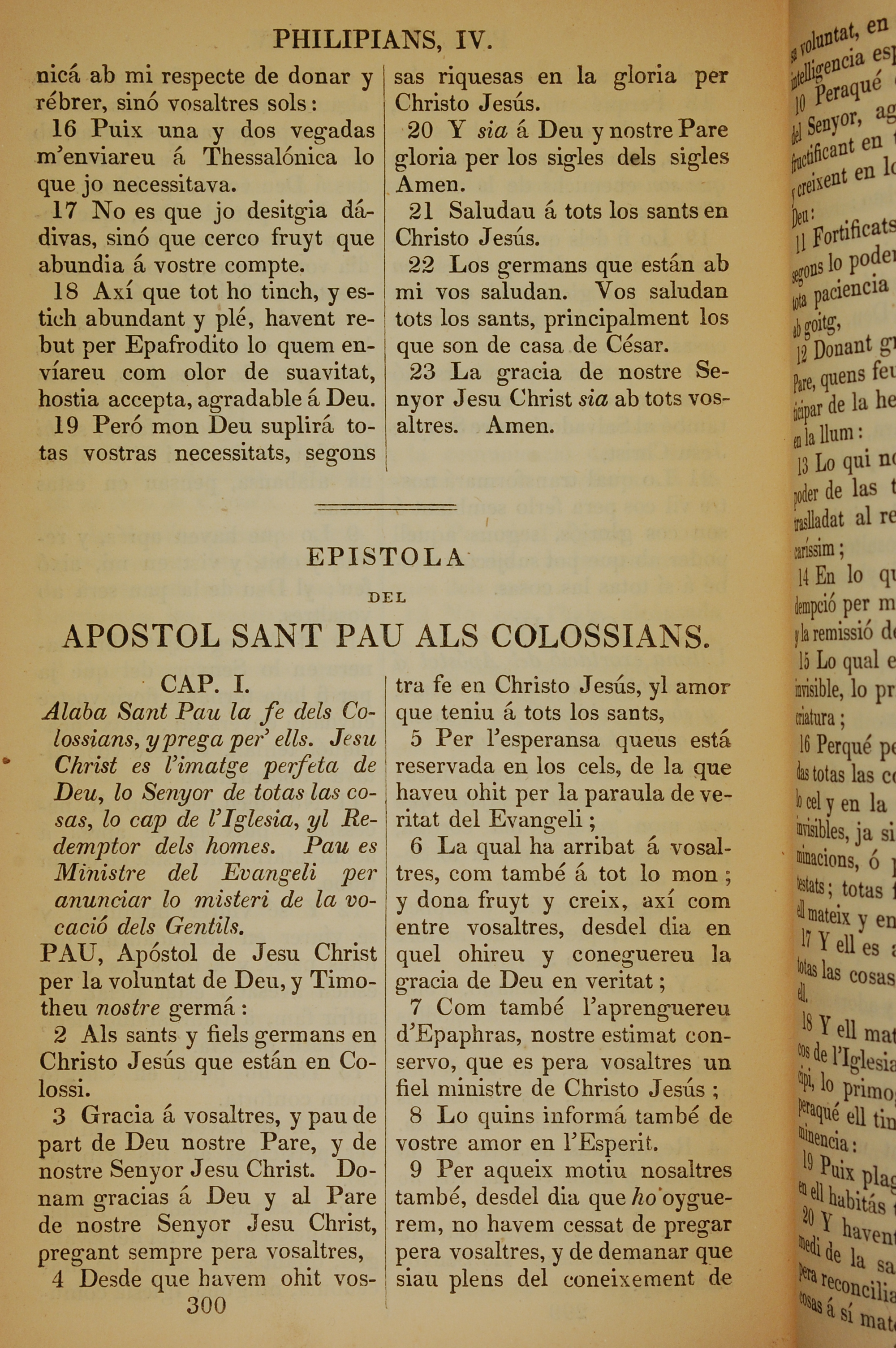 1835年加泰羅尼亞語新約全書 歌羅西書 1 章 1 節到 1 章 9 節