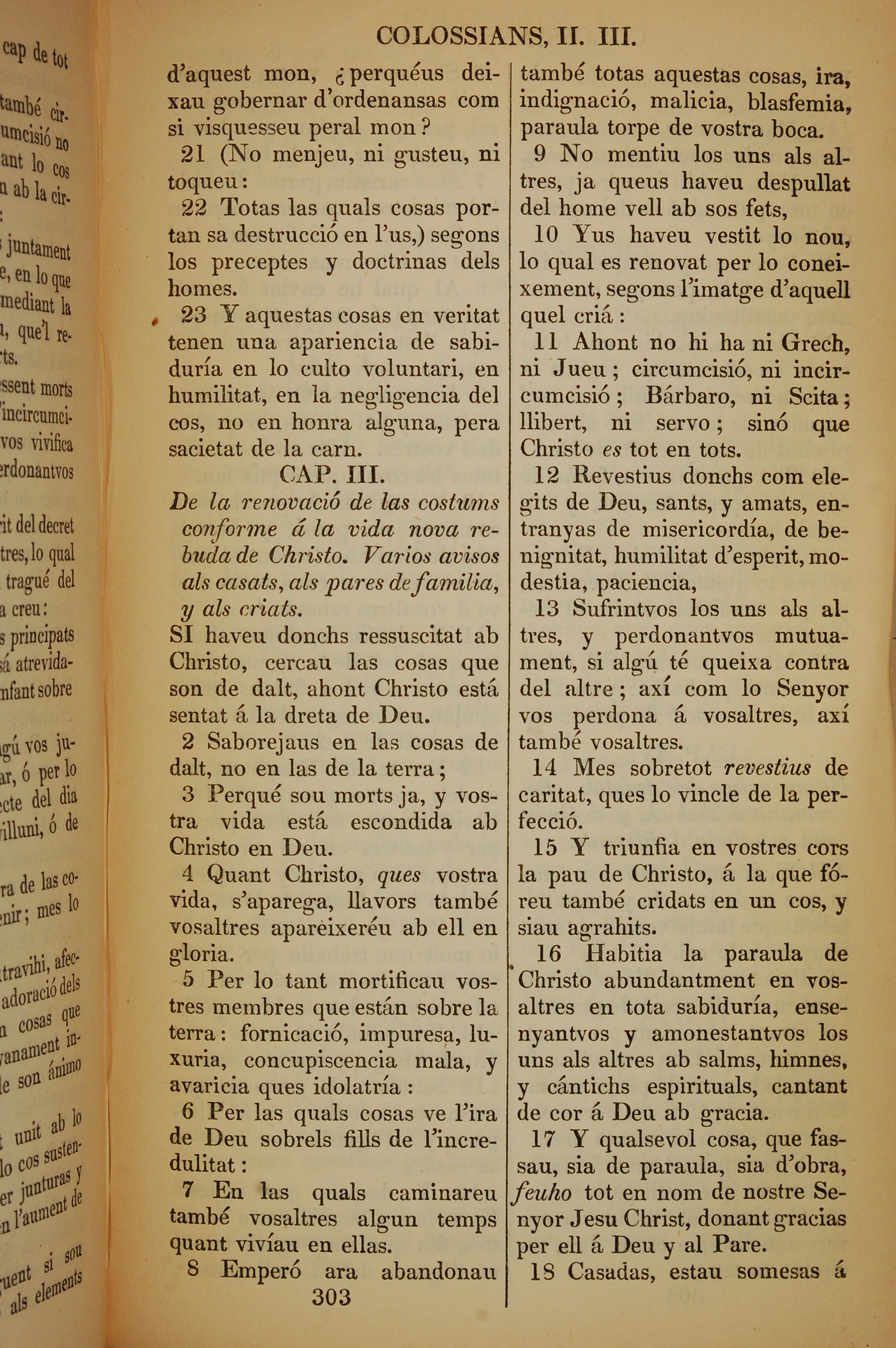 1835年加泰羅尼亞語新約全書 歌羅西書 2 章 21 節到 3 章 18 節