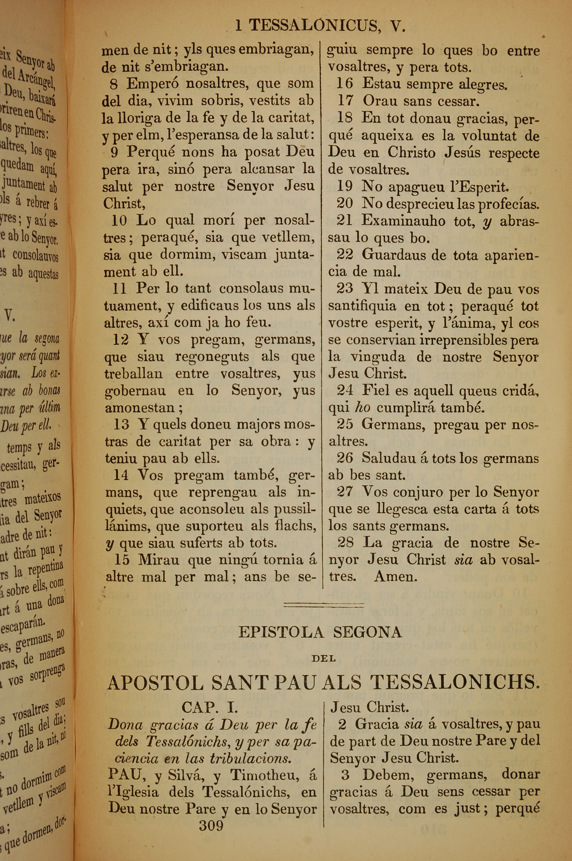 1835年加泰羅尼亞語新約全書 帖撒羅尼迦前書 5 章 8 節到 5 章 28 節