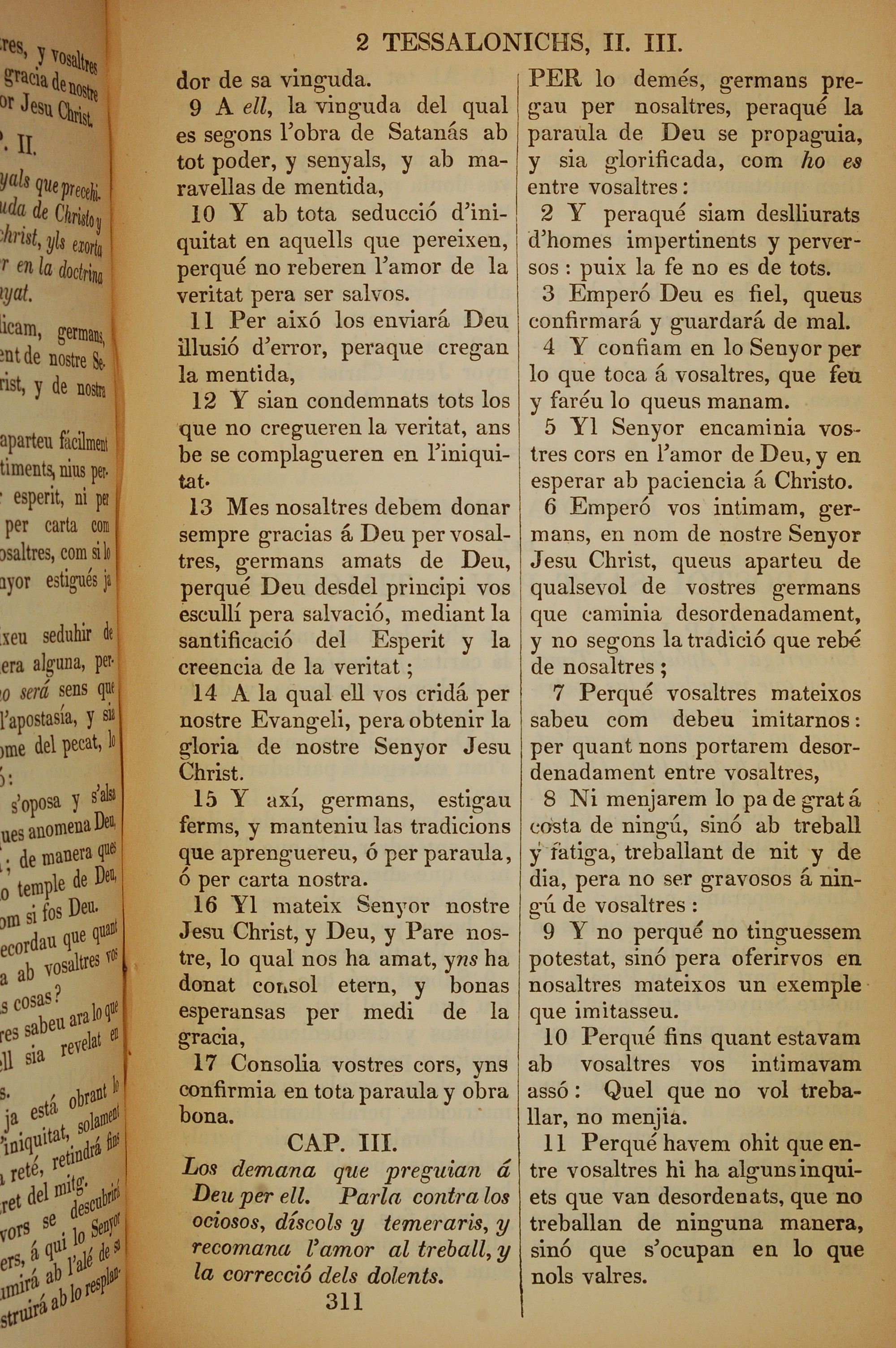 1835年加泰羅尼亞語新約全書 帖撒羅尼迦後書 2 章 9 節到 3 章 11 節