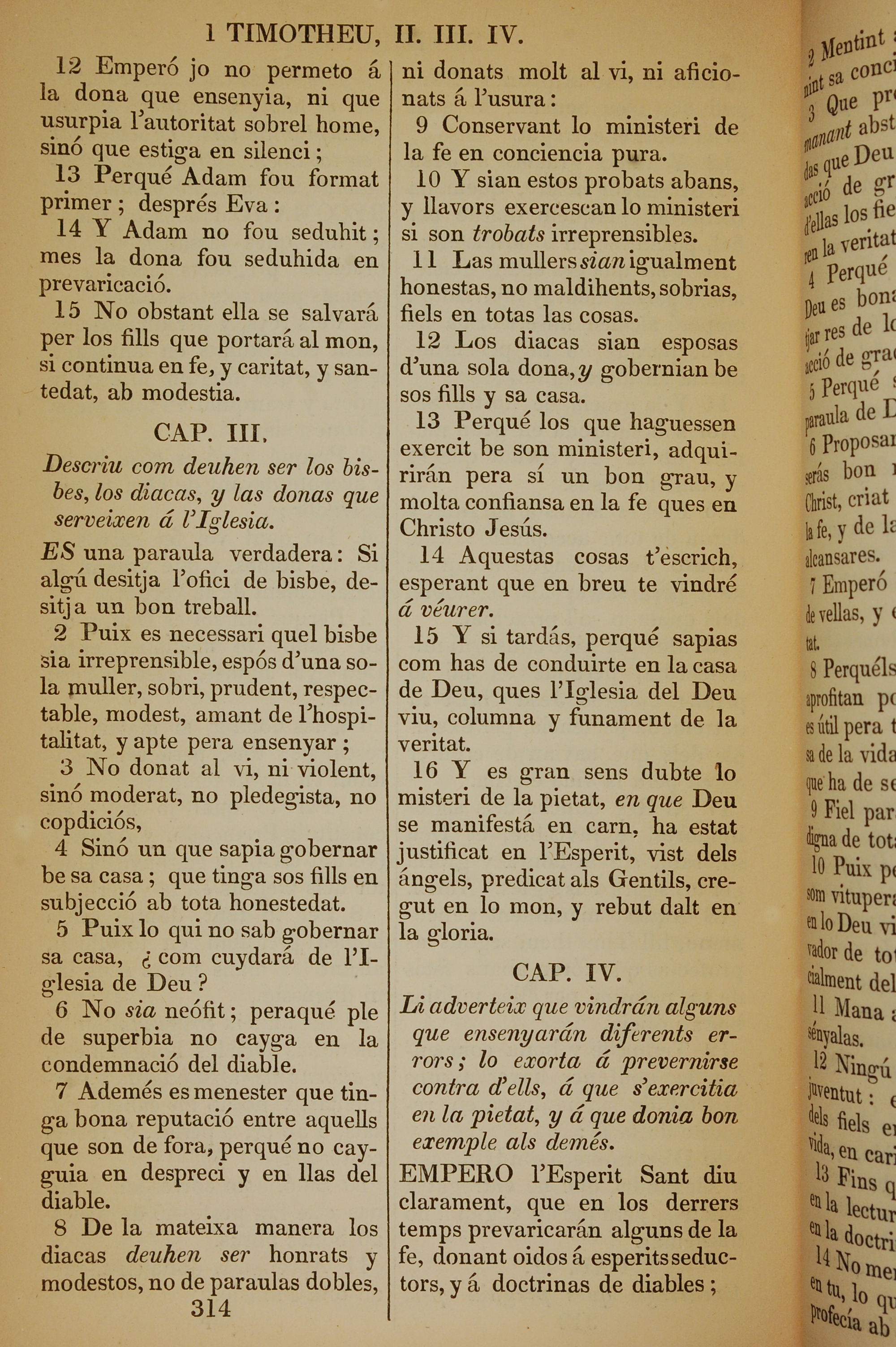 1835年加泰羅尼亞語新約全書 提摩太前書 2 章 12 節到 4 章 1 節