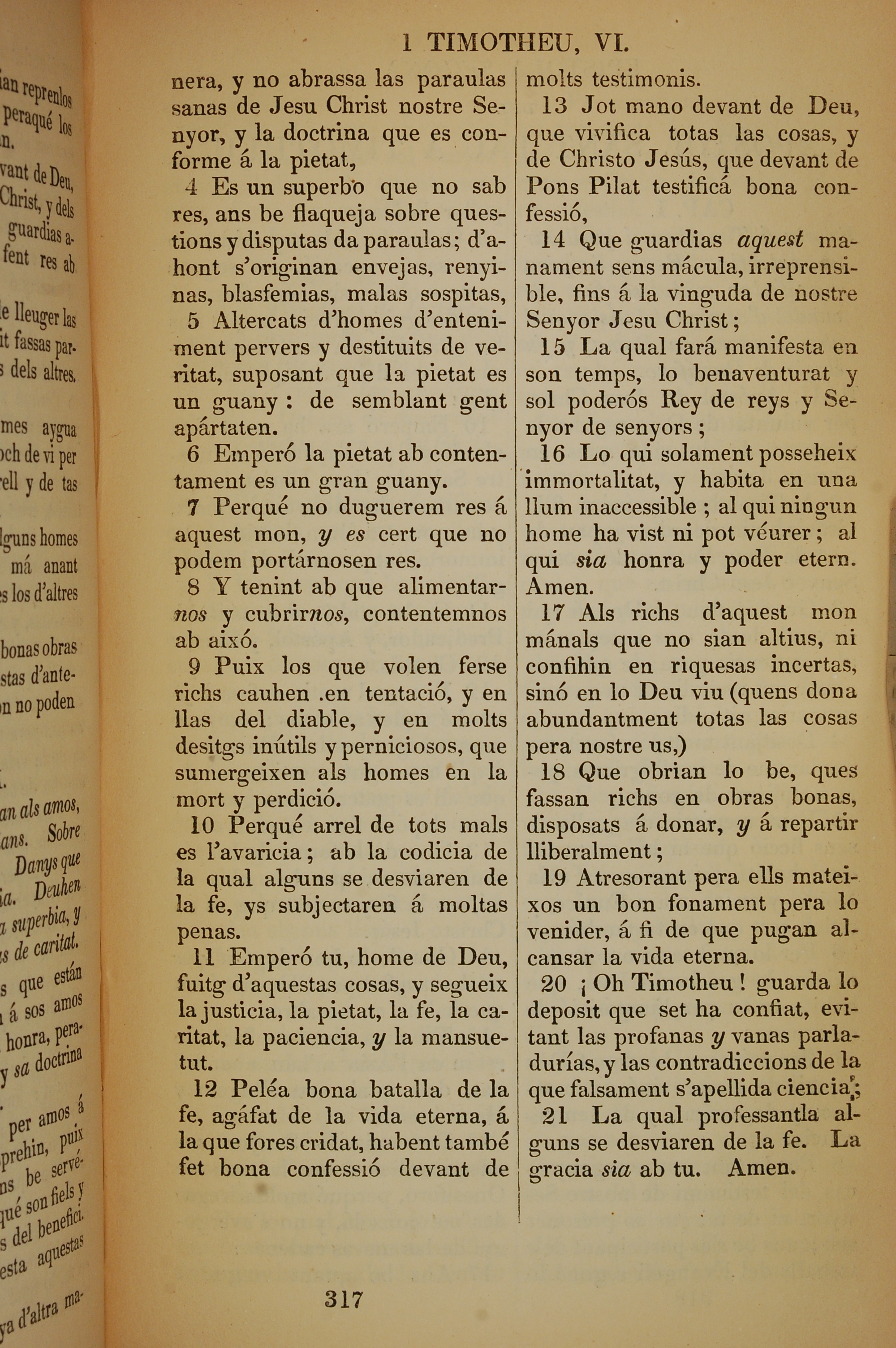 1835年加泰羅尼亞語新約全書 提摩太前書 6 章 4 節到 6 章 21 節