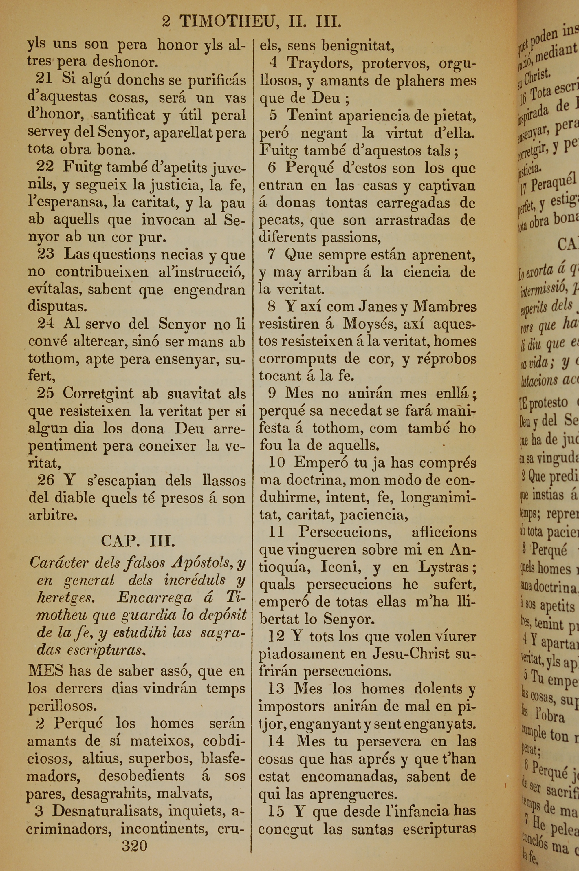 1835年加泰羅尼亞語新約全書 提摩太後書 2 章 21 節到 3 章 15 節
