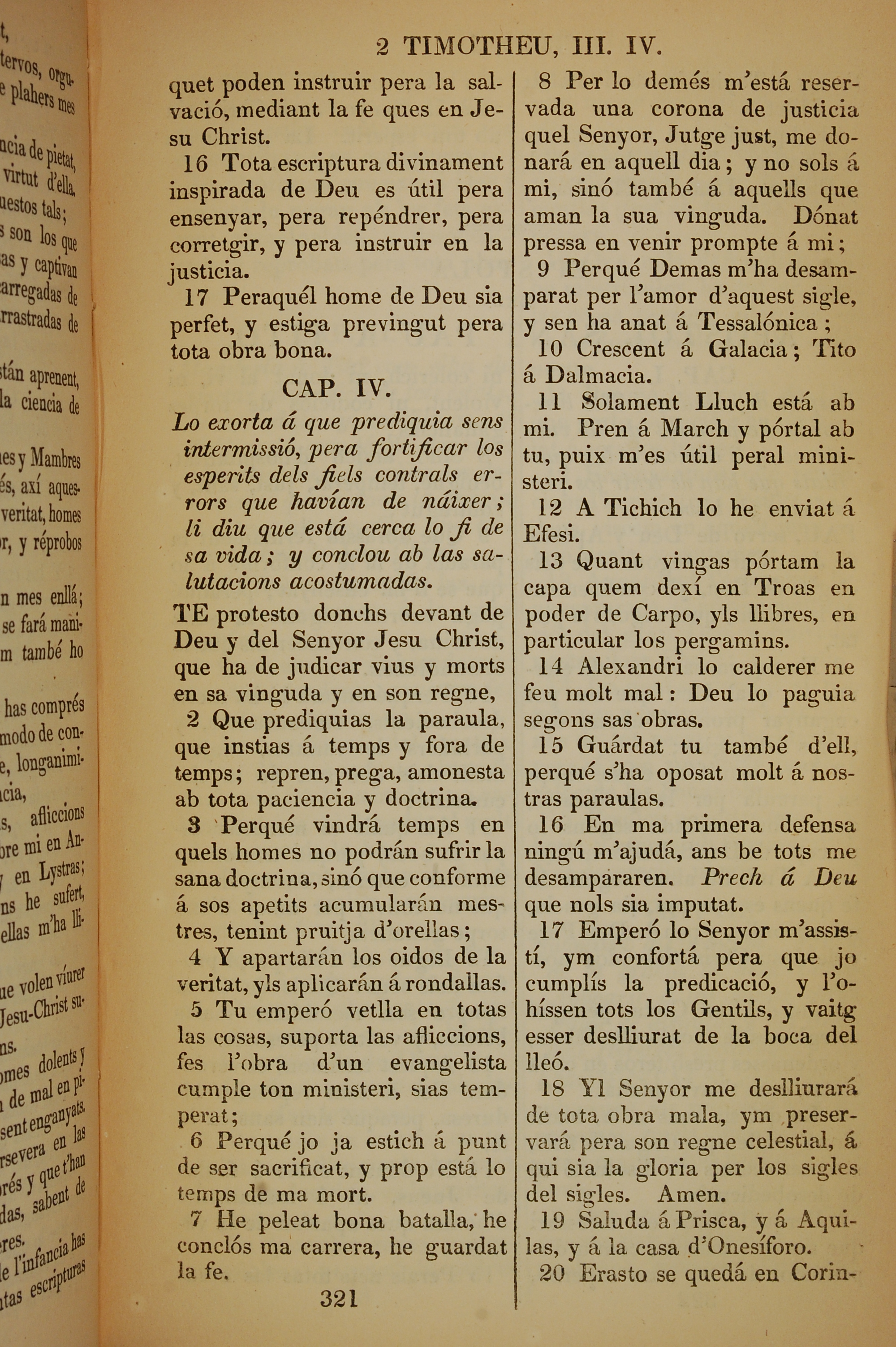 1835年加泰羅尼亞語新約全書 提摩太後書 3 章 16 節到 4 章 20 節