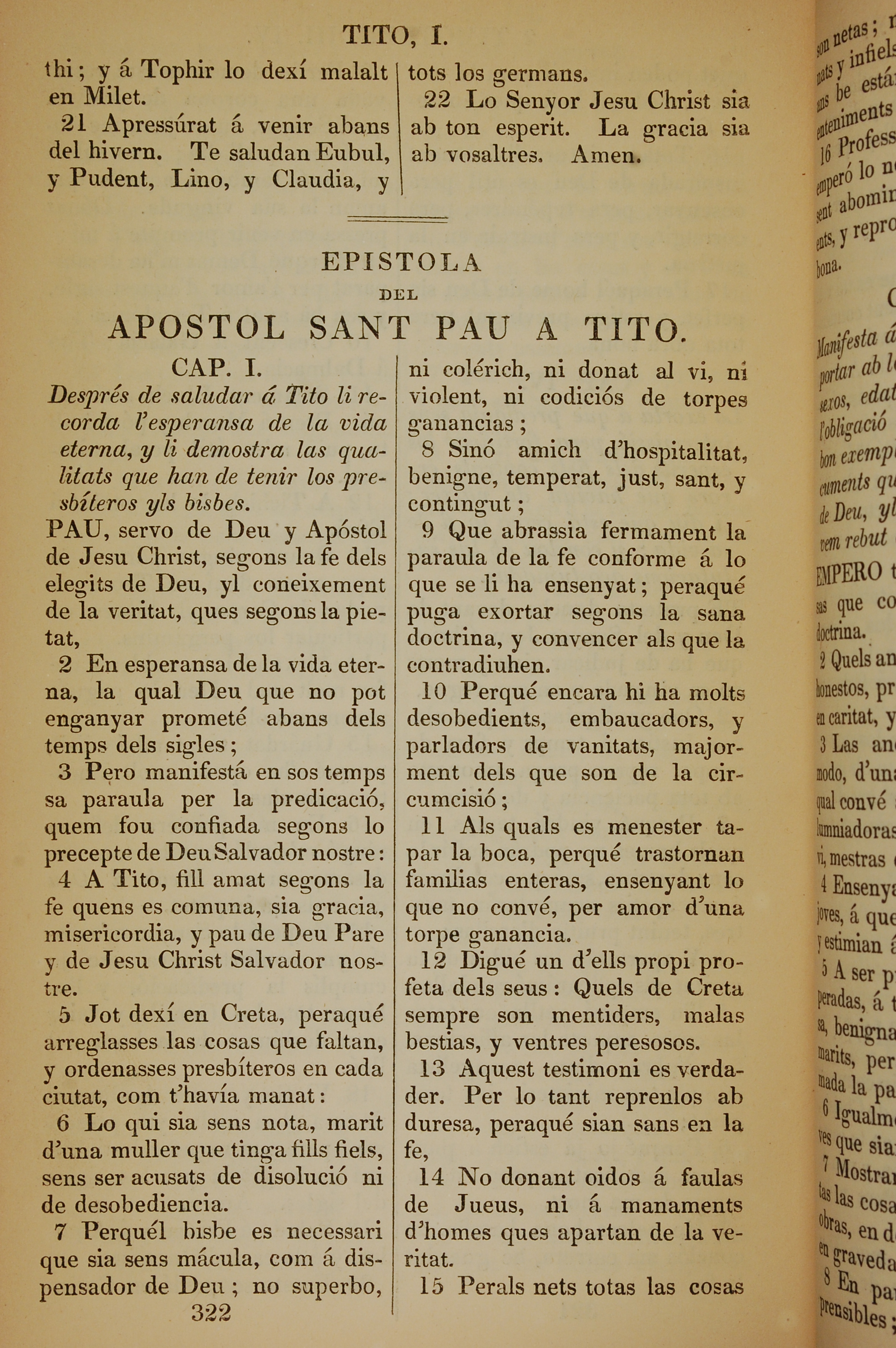 1835年加泰羅尼亞語新約全書 提多書 1 章 1 節到 1 章 15 節