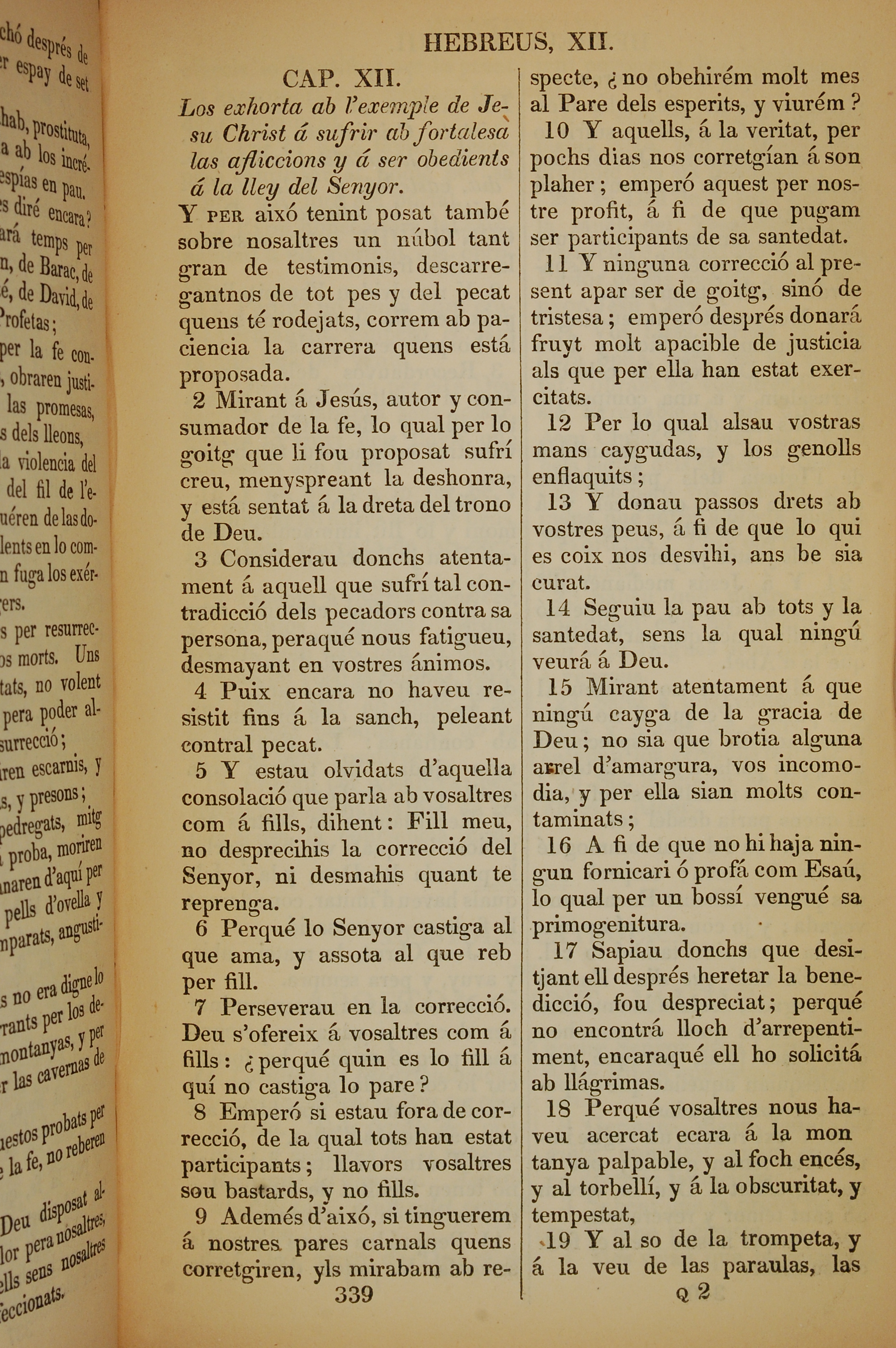 1835年加泰羅尼亞語新約全書 希伯來書 12 章 1 節到 12 章 19 節