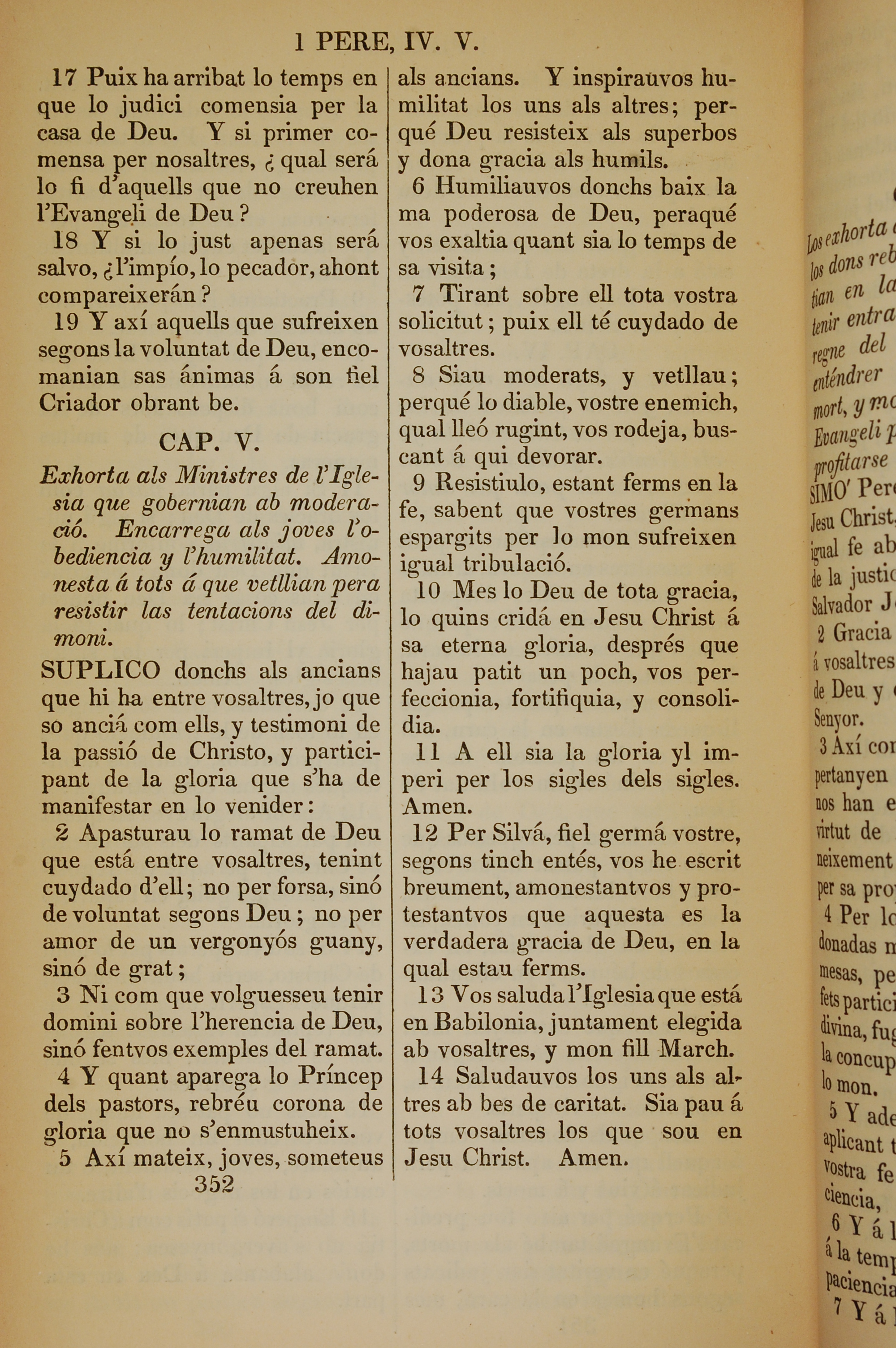 1835年加泰羅尼亞語新約全書 彼得前書 4 章 17 節到 5 章 14 節