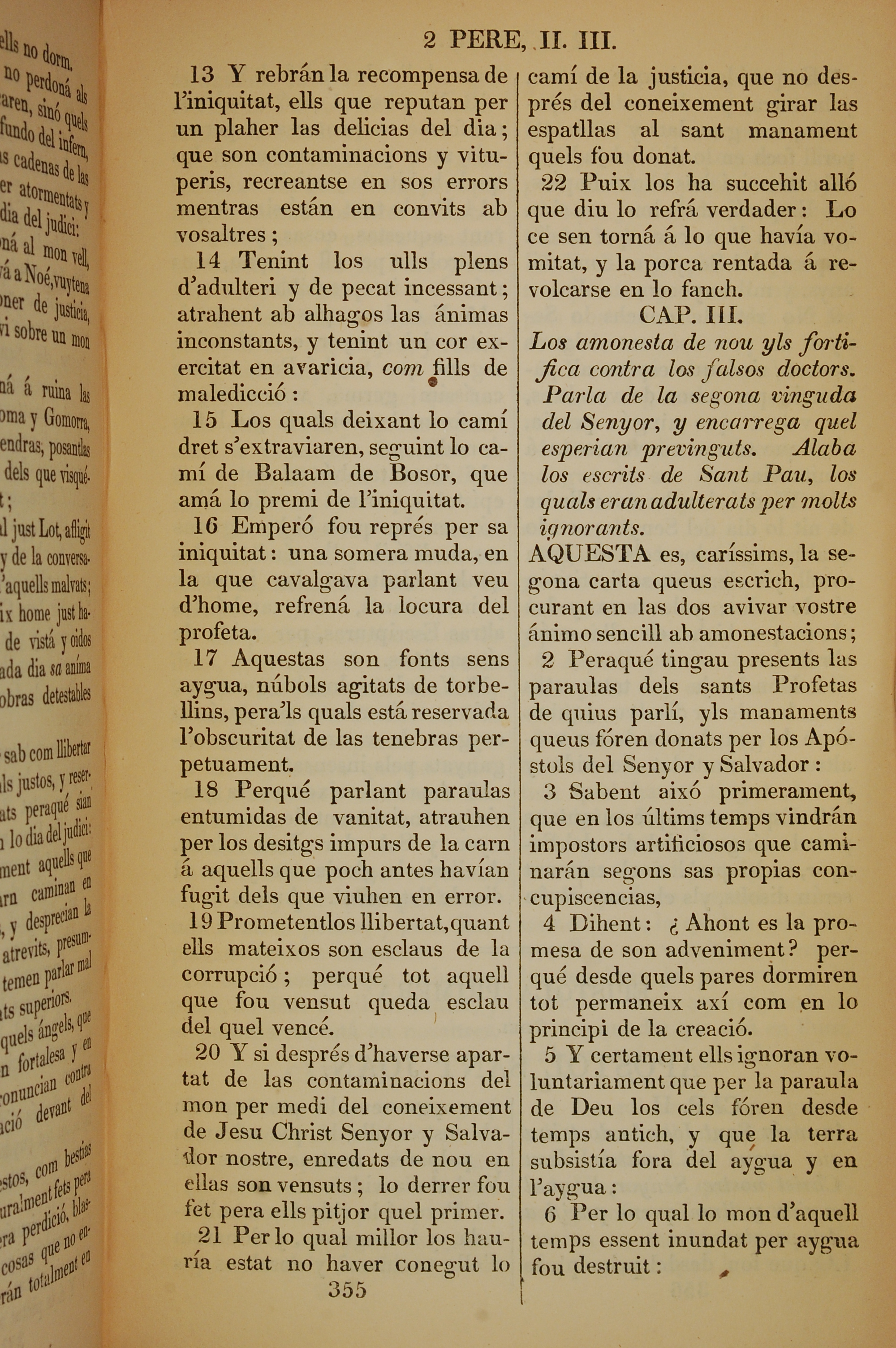 1835年加泰羅尼亞語新約全書 彼得後書 2 章 13 節到 3 章 6 節