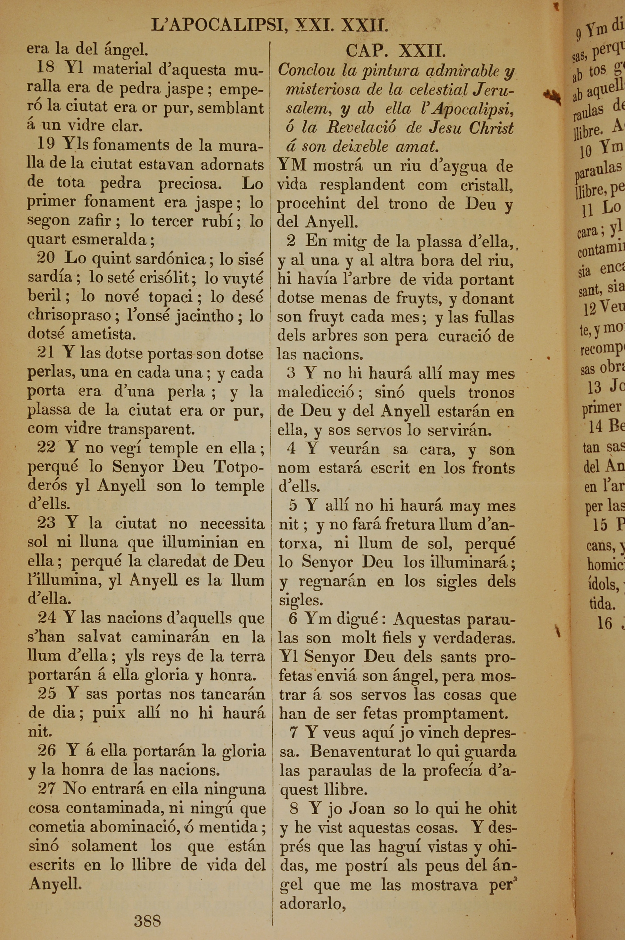 1835年加泰羅尼亞語新約全書 啟示錄 21 章 18 節到 22 章 8 節