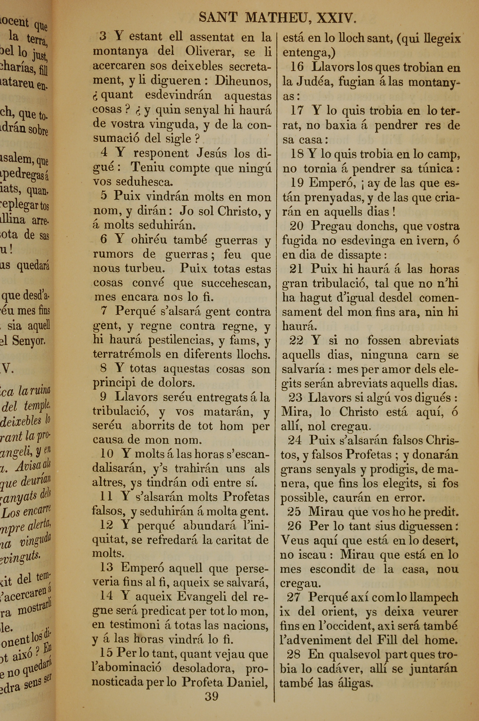 1835年加泰羅尼亞語新約全書 馬太福音 24 章 3 節到 24 章 28 節