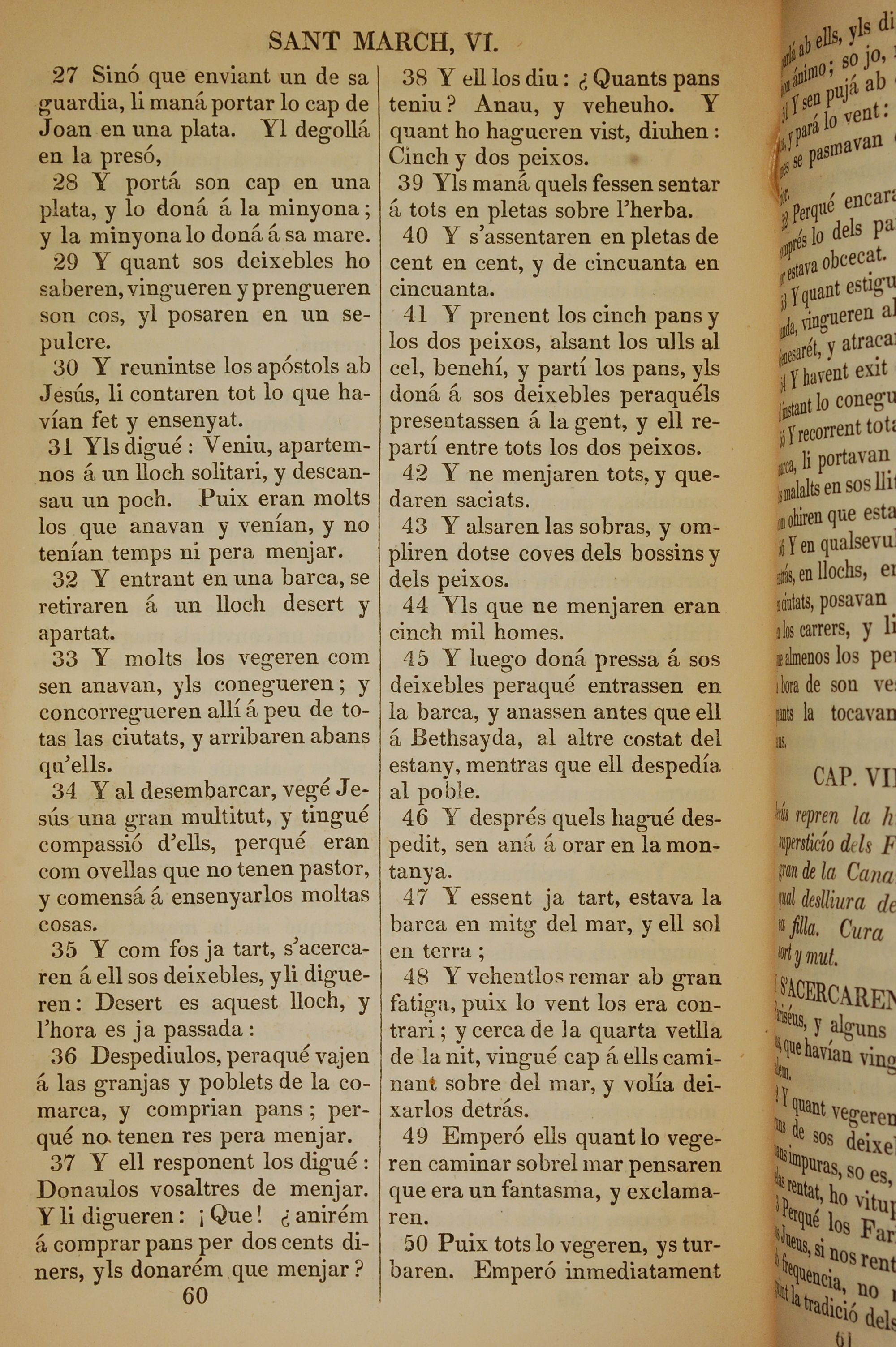 1835年加泰羅尼亞語新約全書 馬可福音 6 章 27 節到 6 章 50 節