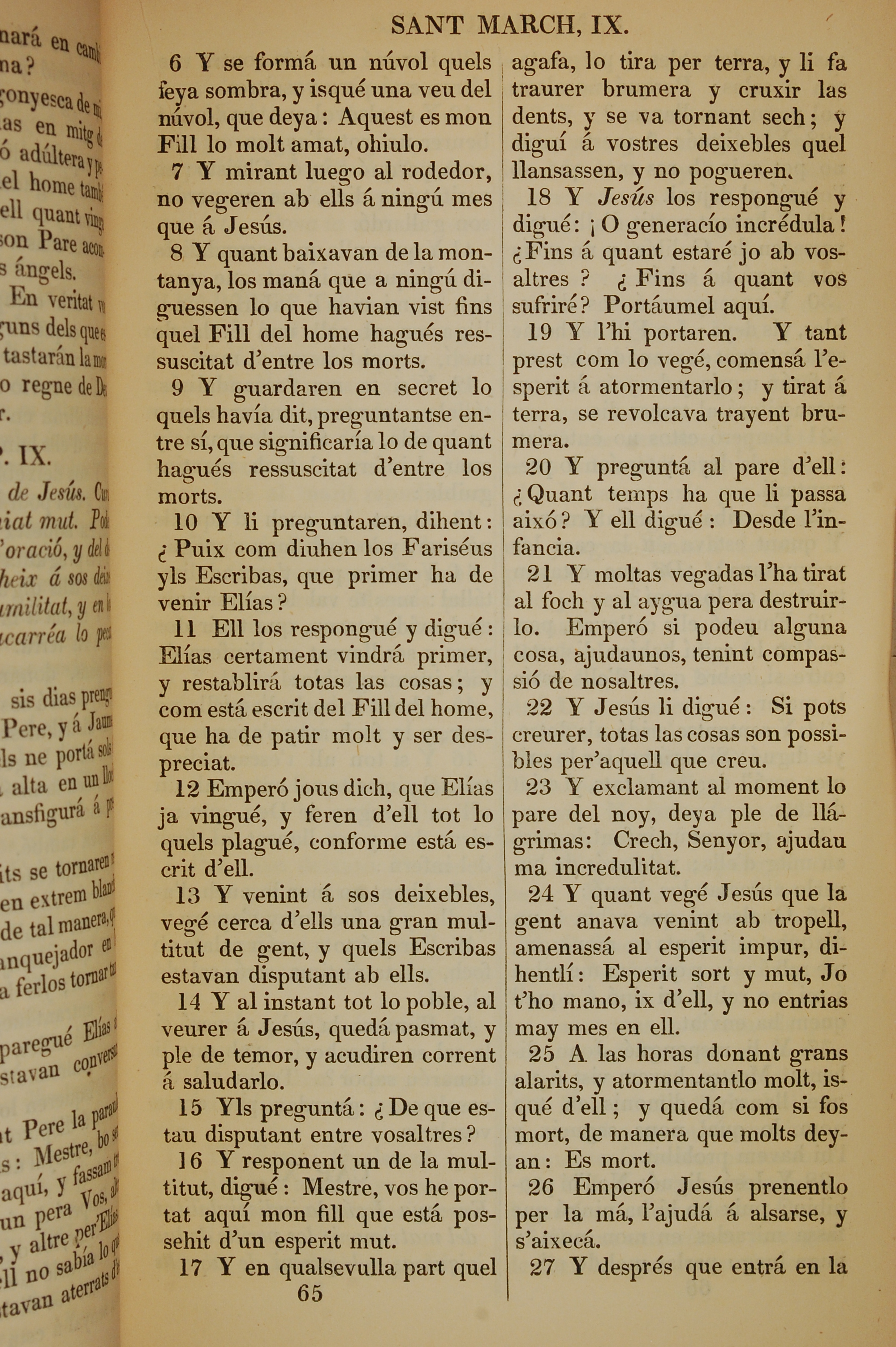 1835年加泰羅尼亞語新約全書 馬可福音 9 章 6 節到 9 章 27 節