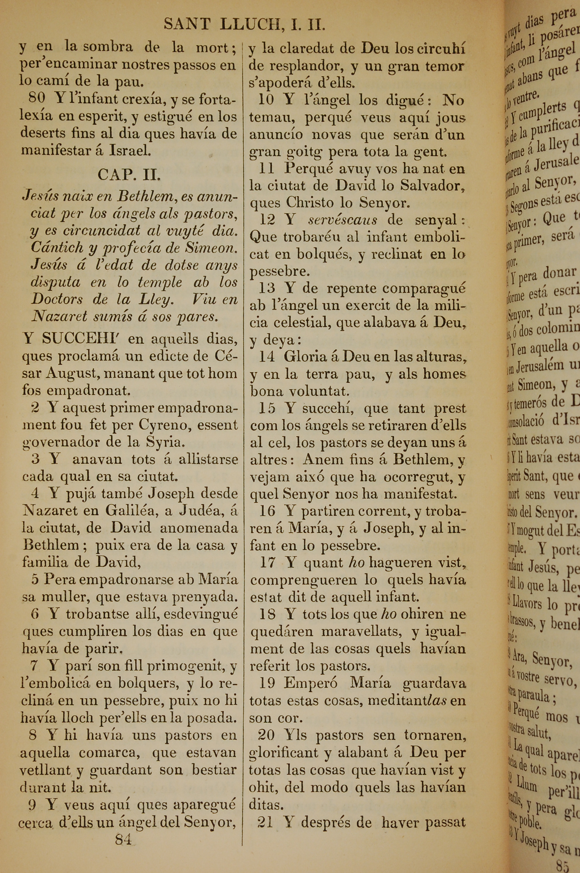 1835年加泰羅尼亞語新約全書 路加福音 1 章 80 節到 2 章 21 節
