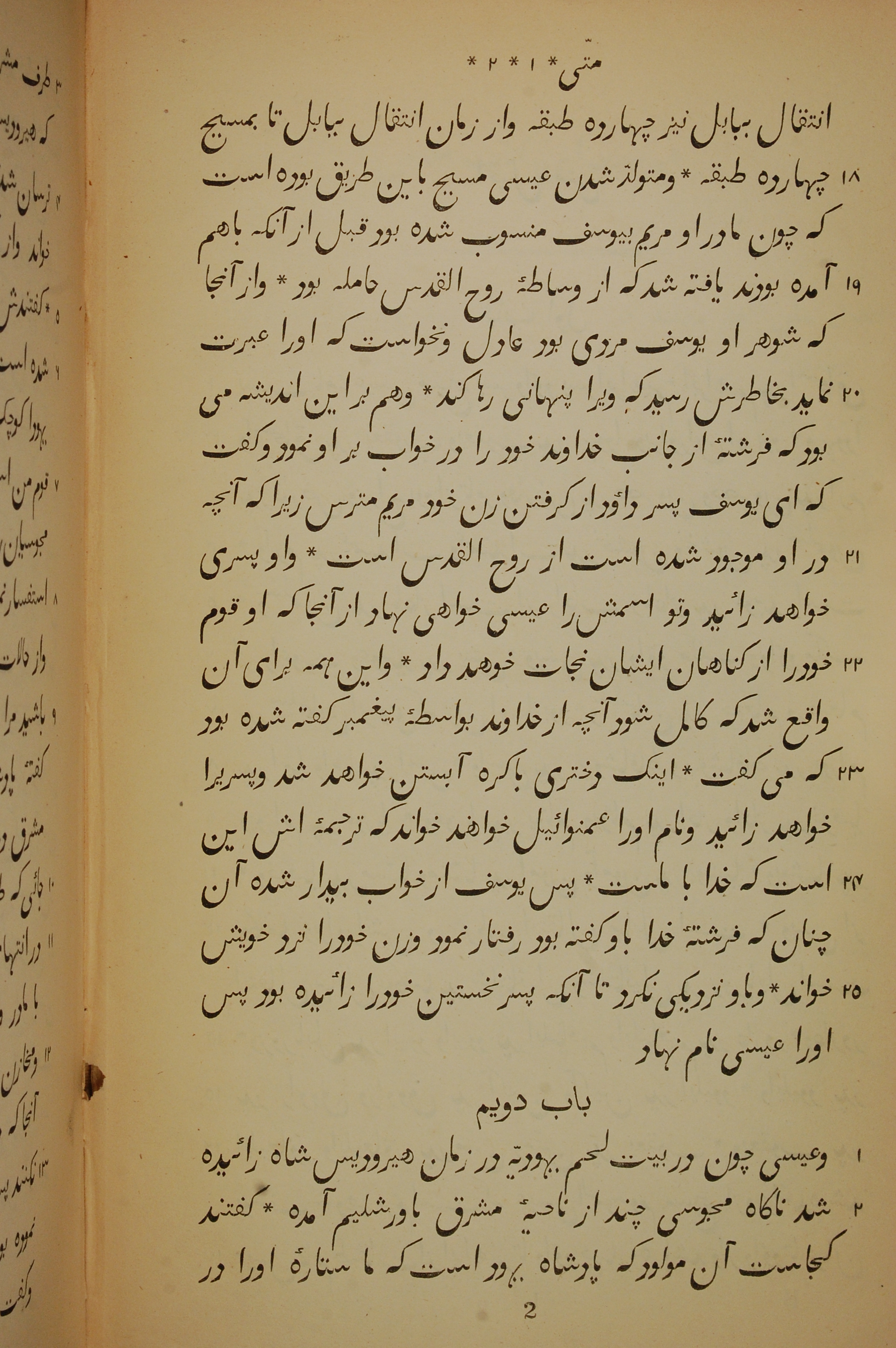 1837年New Testament Translated From the Original Greek into Persian 馬太福音 1 章 18 節到 2 章 2 節