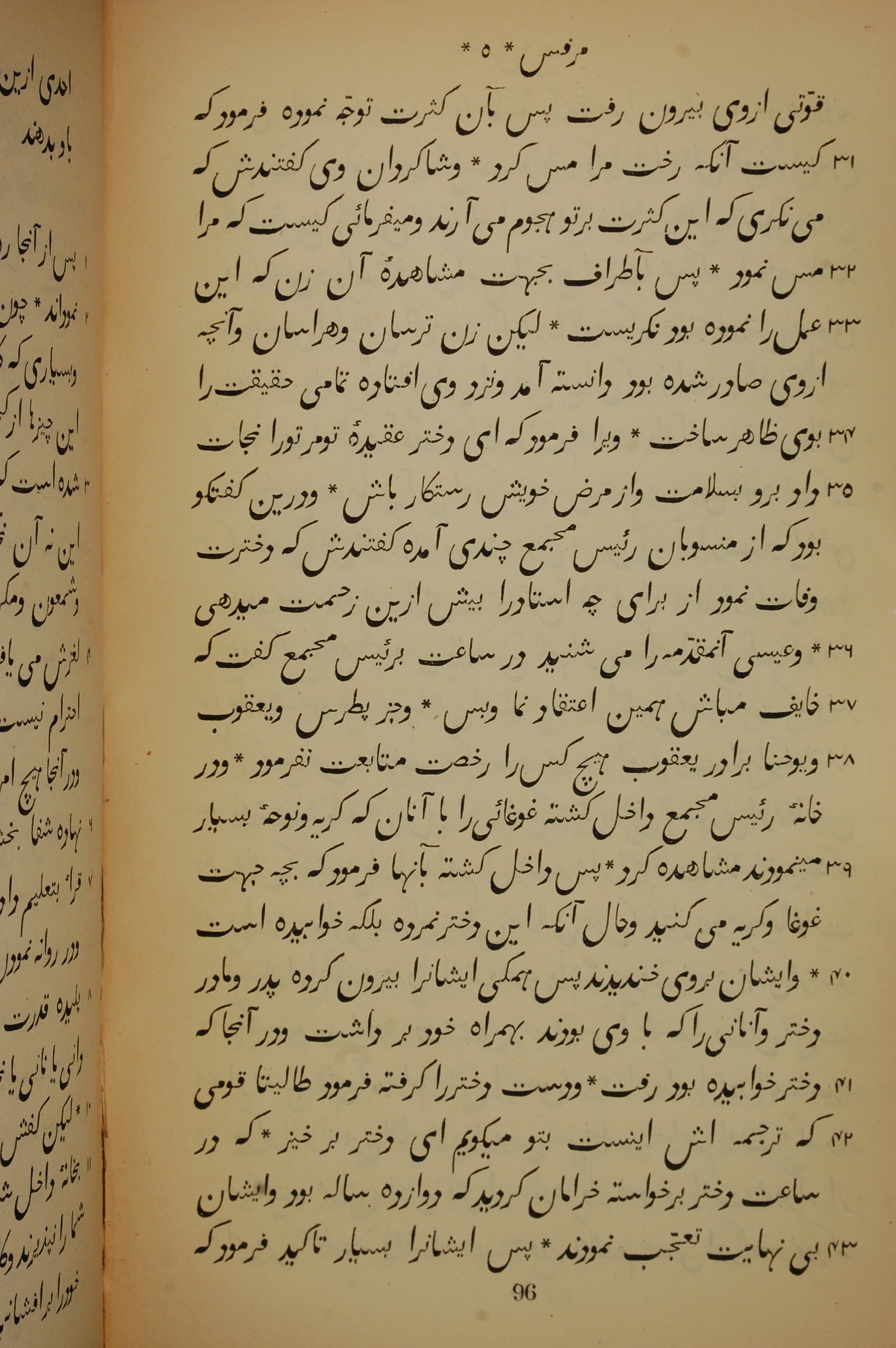 1837年New Testament Translated From the Original Greek into Persian 馬可福音 5 章 31 節到 5 章 43 節
