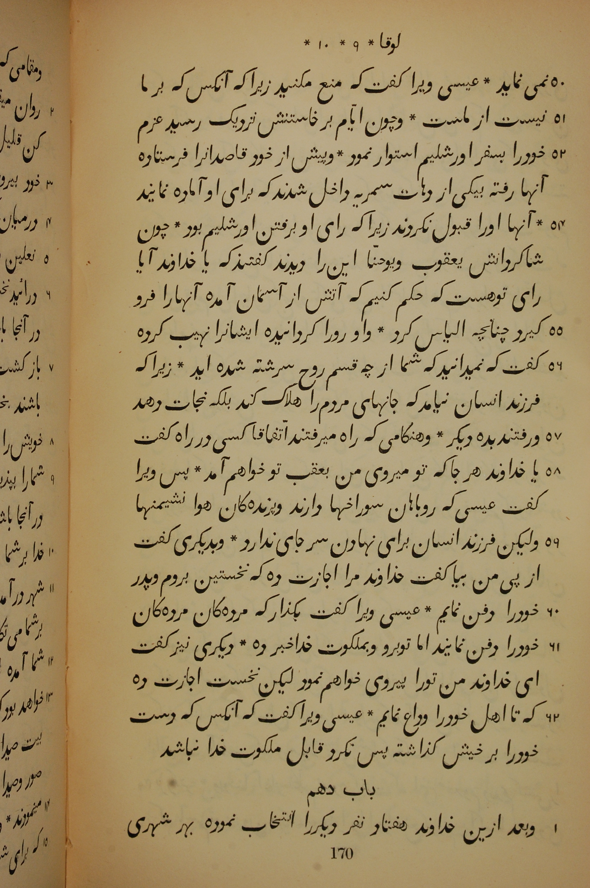 1837年New Testament Translated From the Original Greek into Persian 路加福音 9 章 50 節到 10 章 1 節