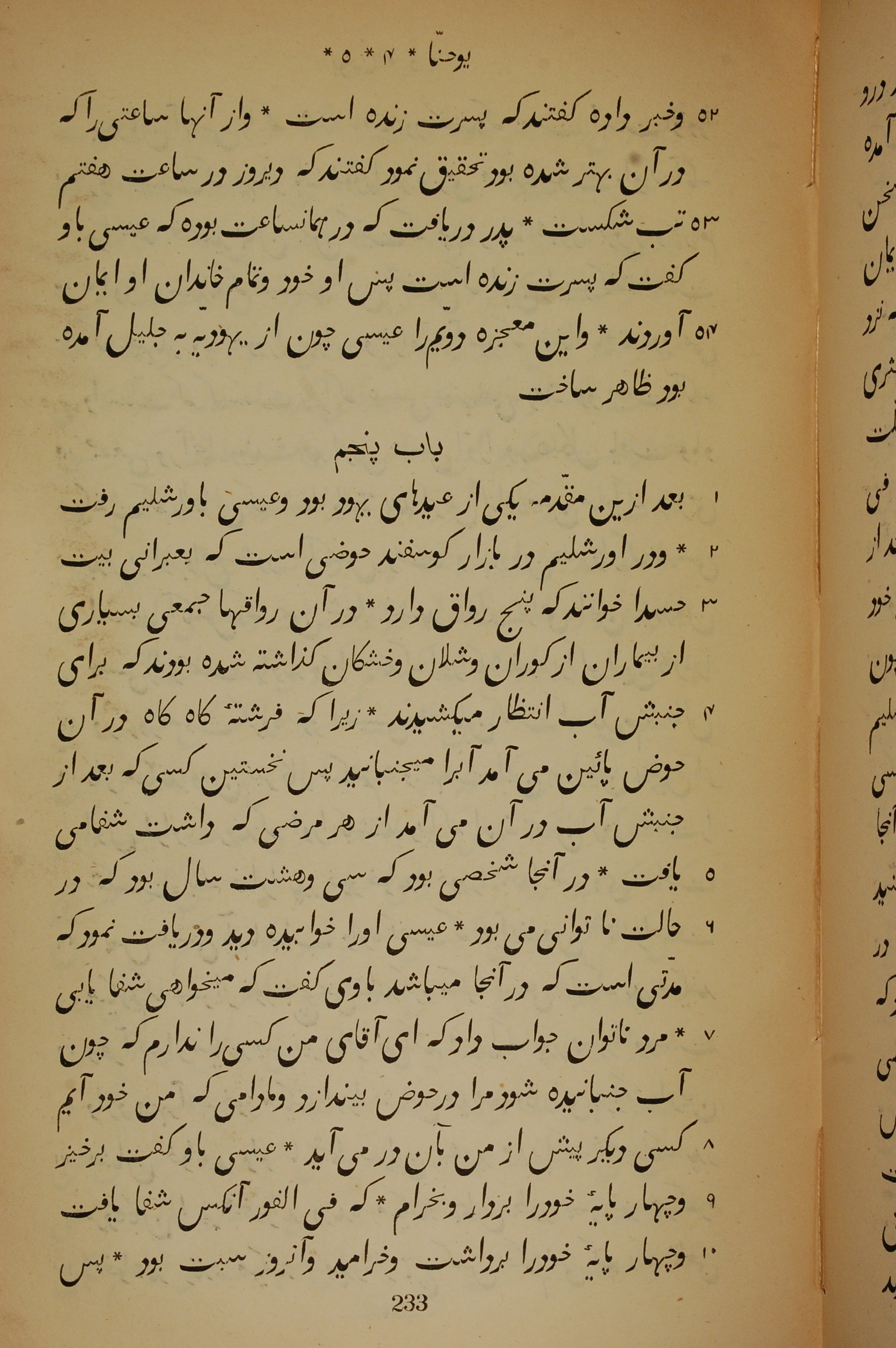 1837年New Testament Translated From the Original Greek into Persian 約翰福音 4 章 52 節到 5 章 10 節