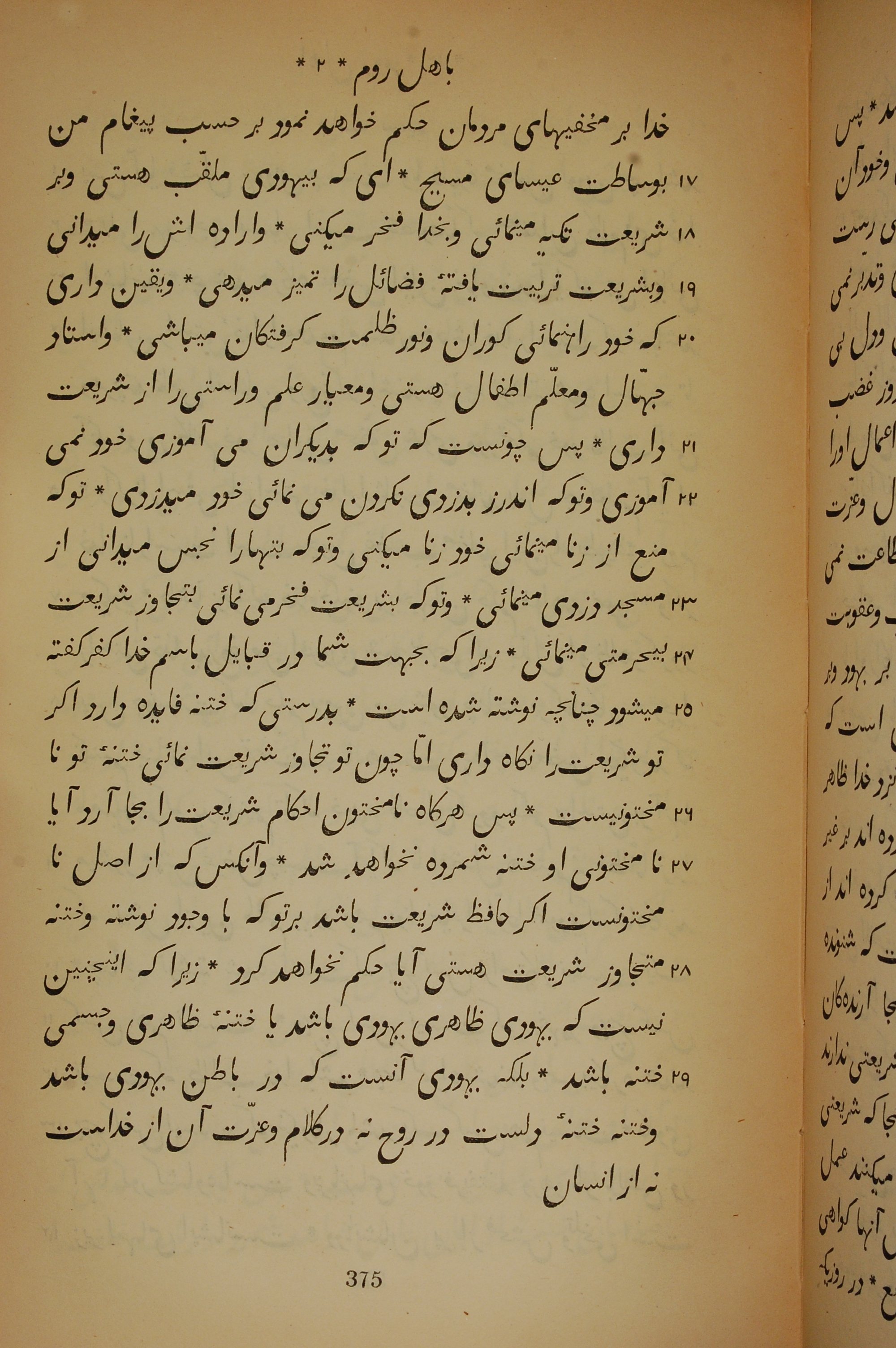 1837年New Testament Translated From the Original Greek into Persian 羅馬書 2 章 17 節到 2 章 29 節