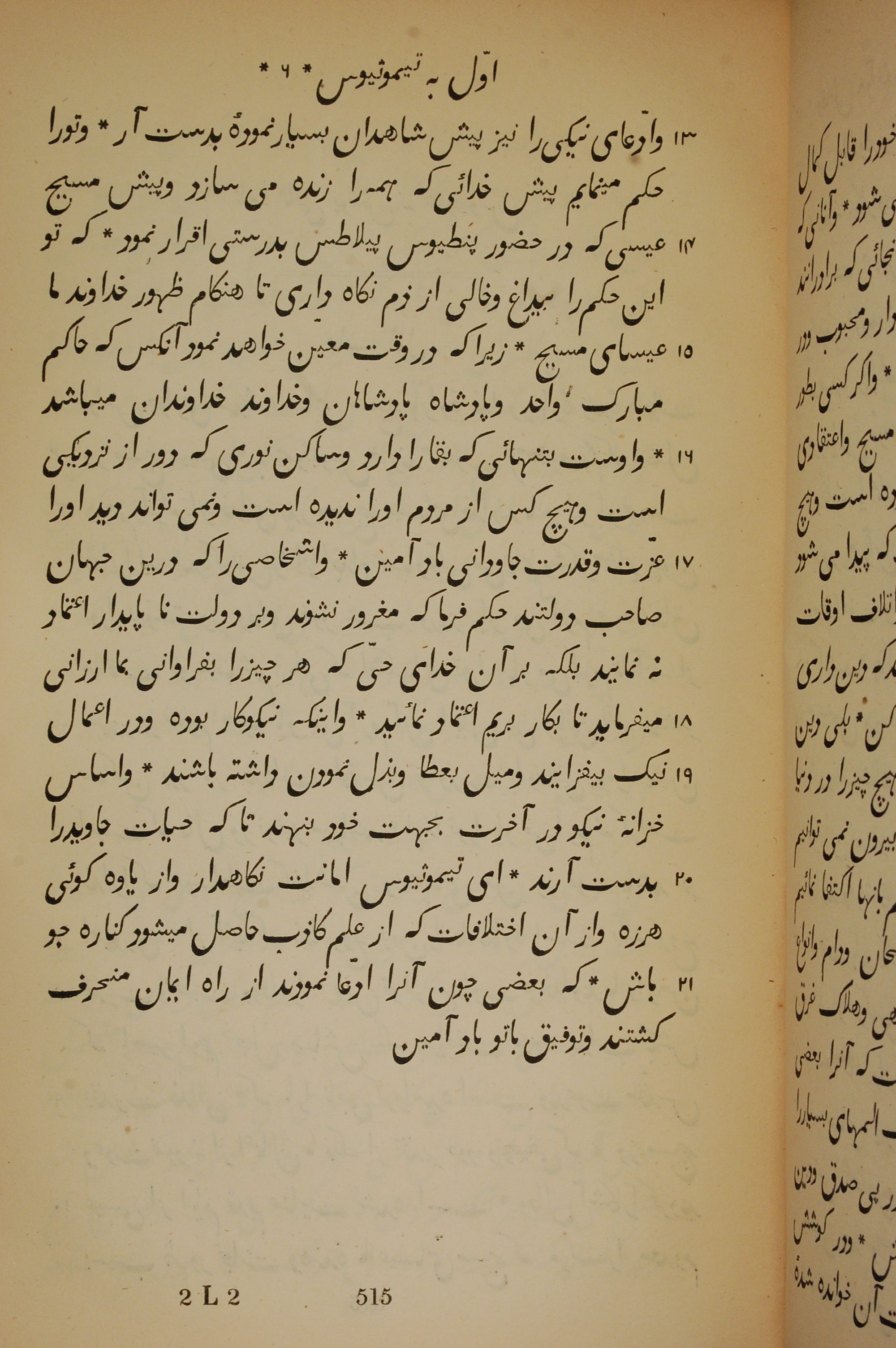 1837年New Testament Translated From the Original Greek into Persian 提摩太前書 6 章 13 節到 6 章 21 節