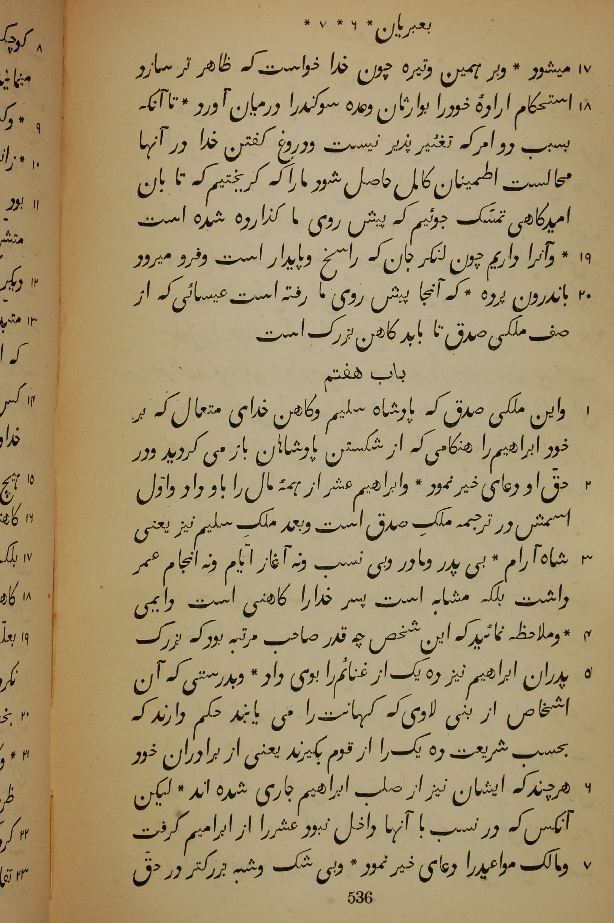 1837年New Testament Translated From the Original Greek into Persian 希伯來書 6 章 17 節到 7 章 7 節