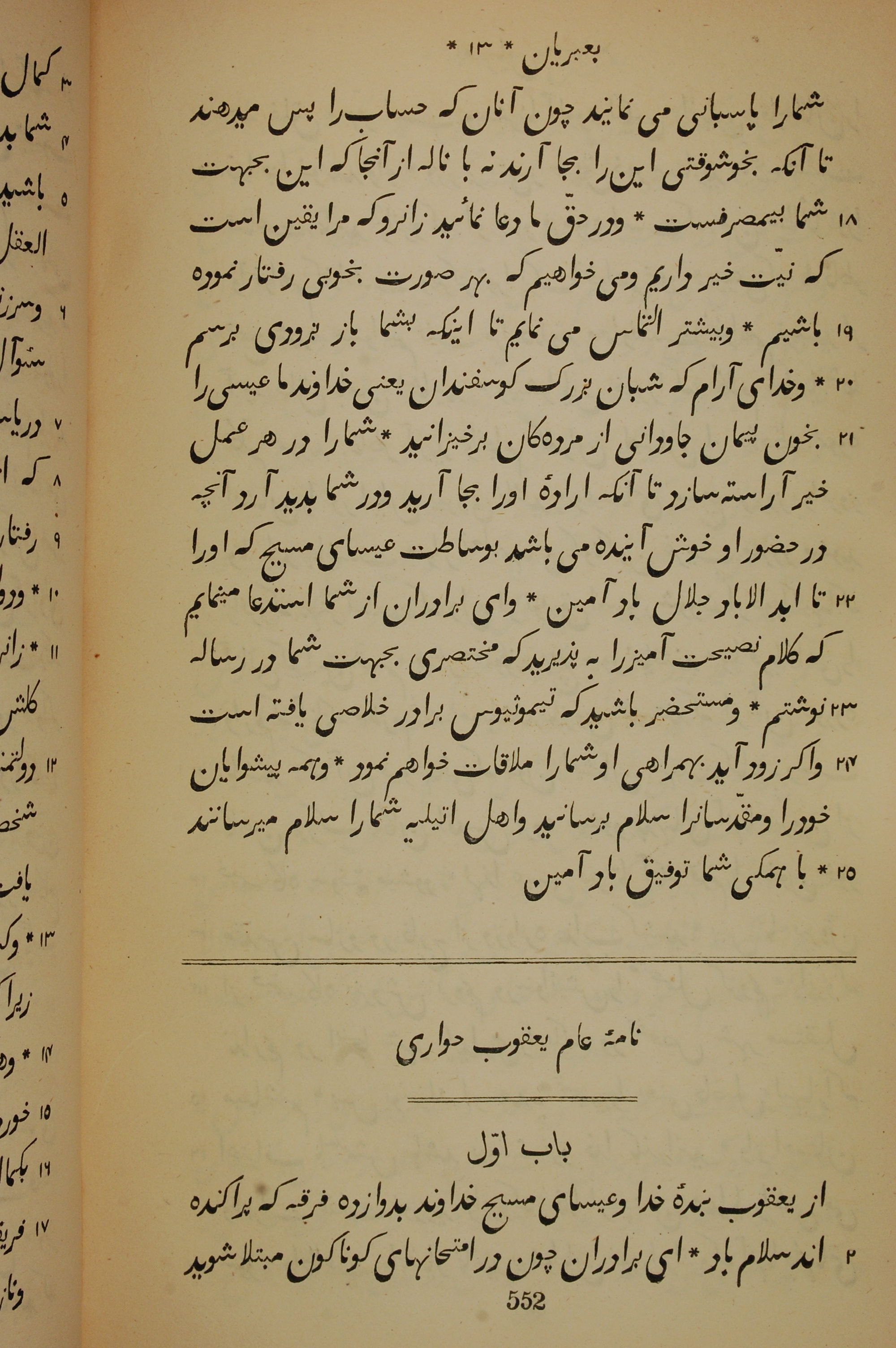 1837年New Testament Translated From the Original Greek into Persian 希伯來書 13 章 18 節到 13 章 25 節