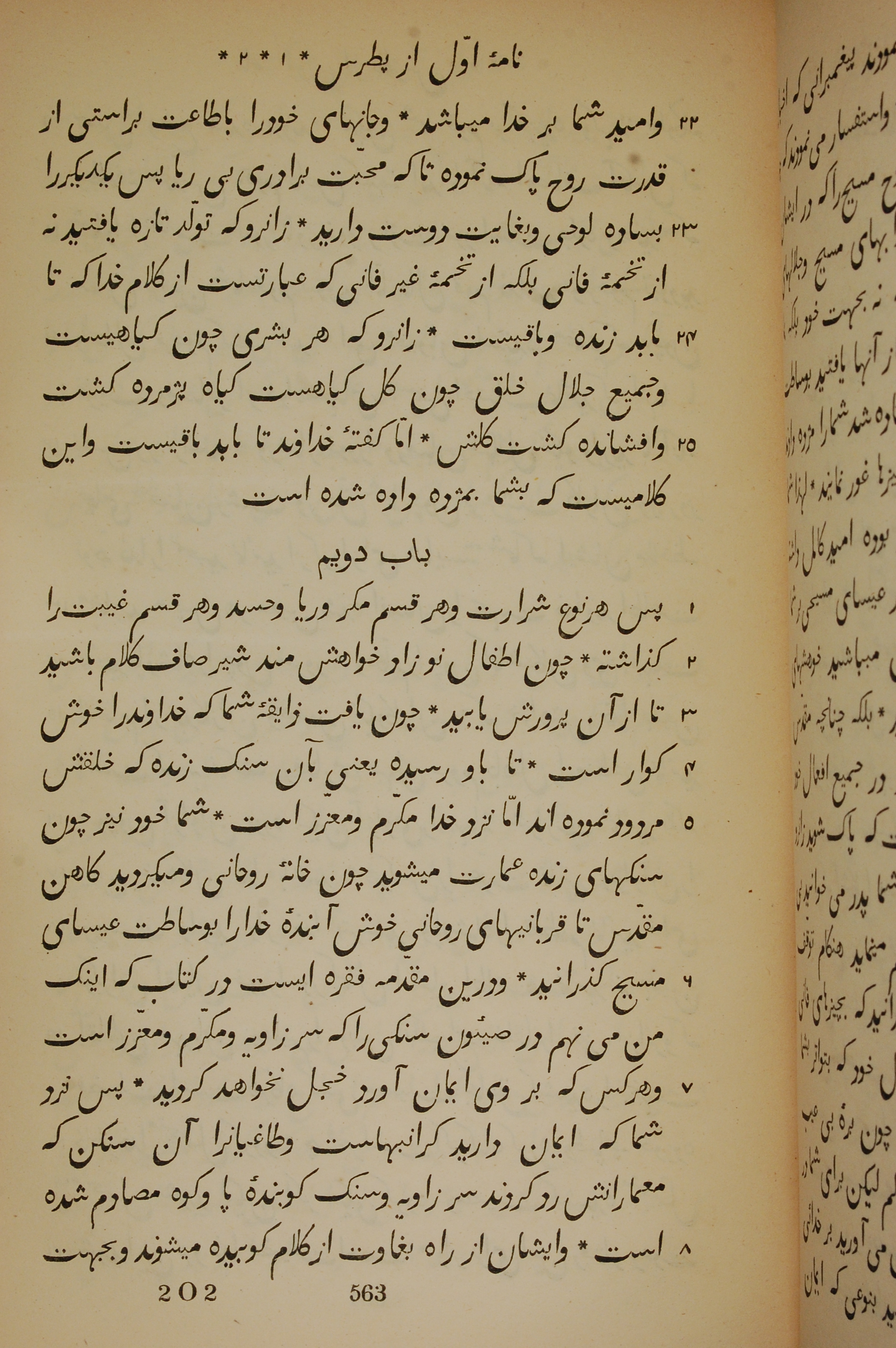 1837年New Testament Translated From the Original Greek into Persian 彼得前書 1 章 22 節到 2 章 8 節
