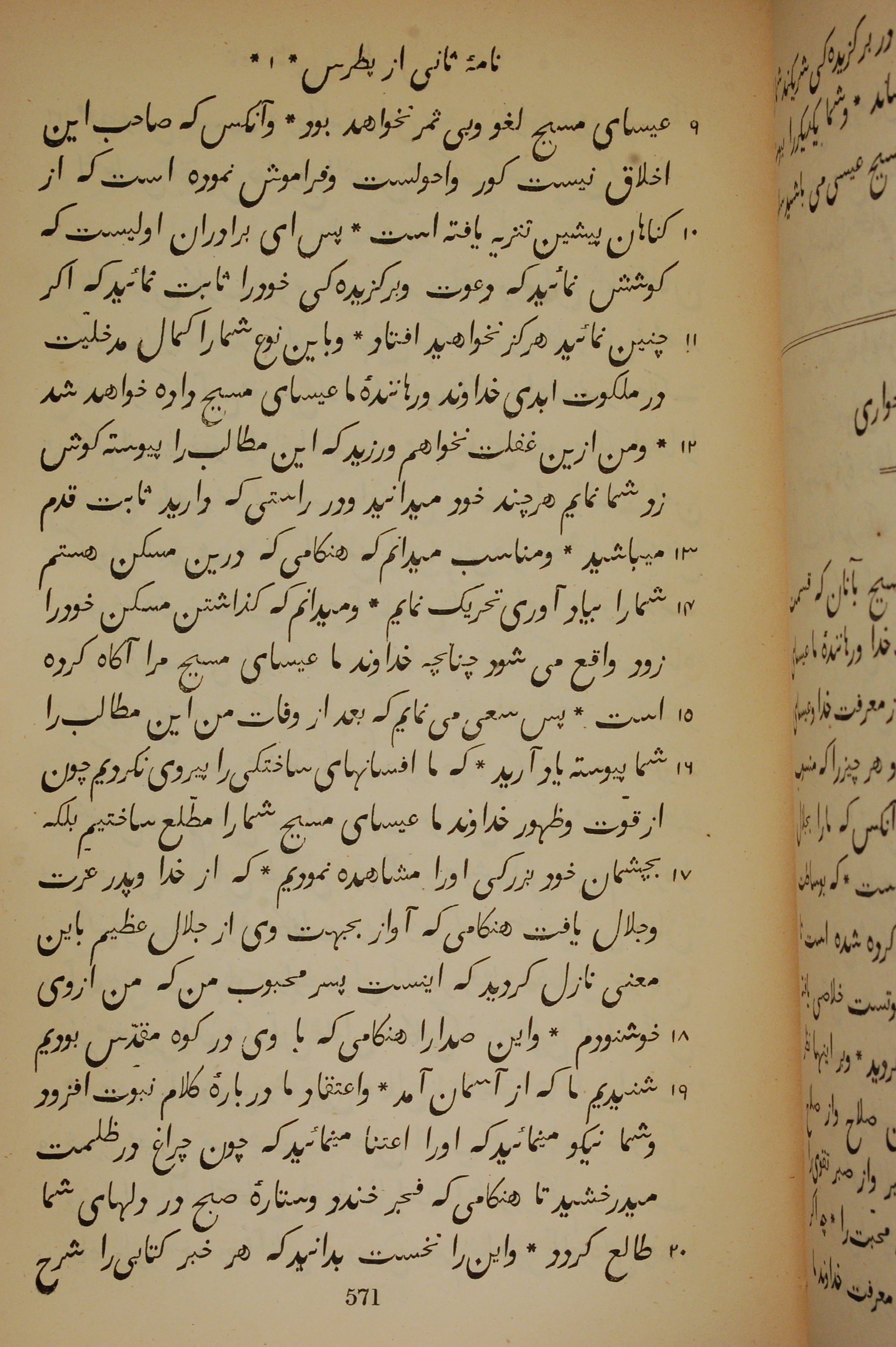 1837年New Testament Translated From the Original Greek into Persian 彼得後書 1 章 9 節到 1 章 20 節