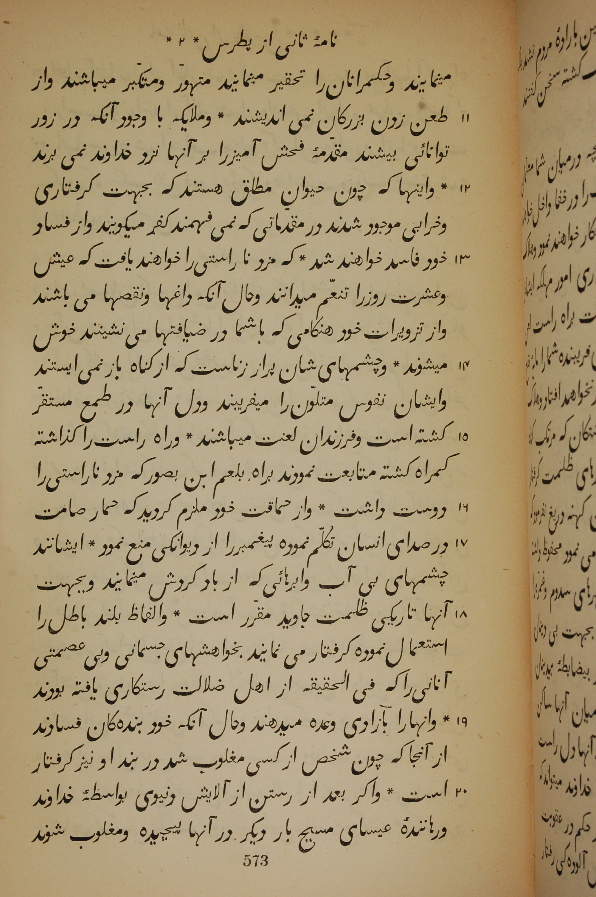 1837年New Testament Translated From the Original Greek into Persian 彼得後書 2 章 11 節到 2 章 20 節