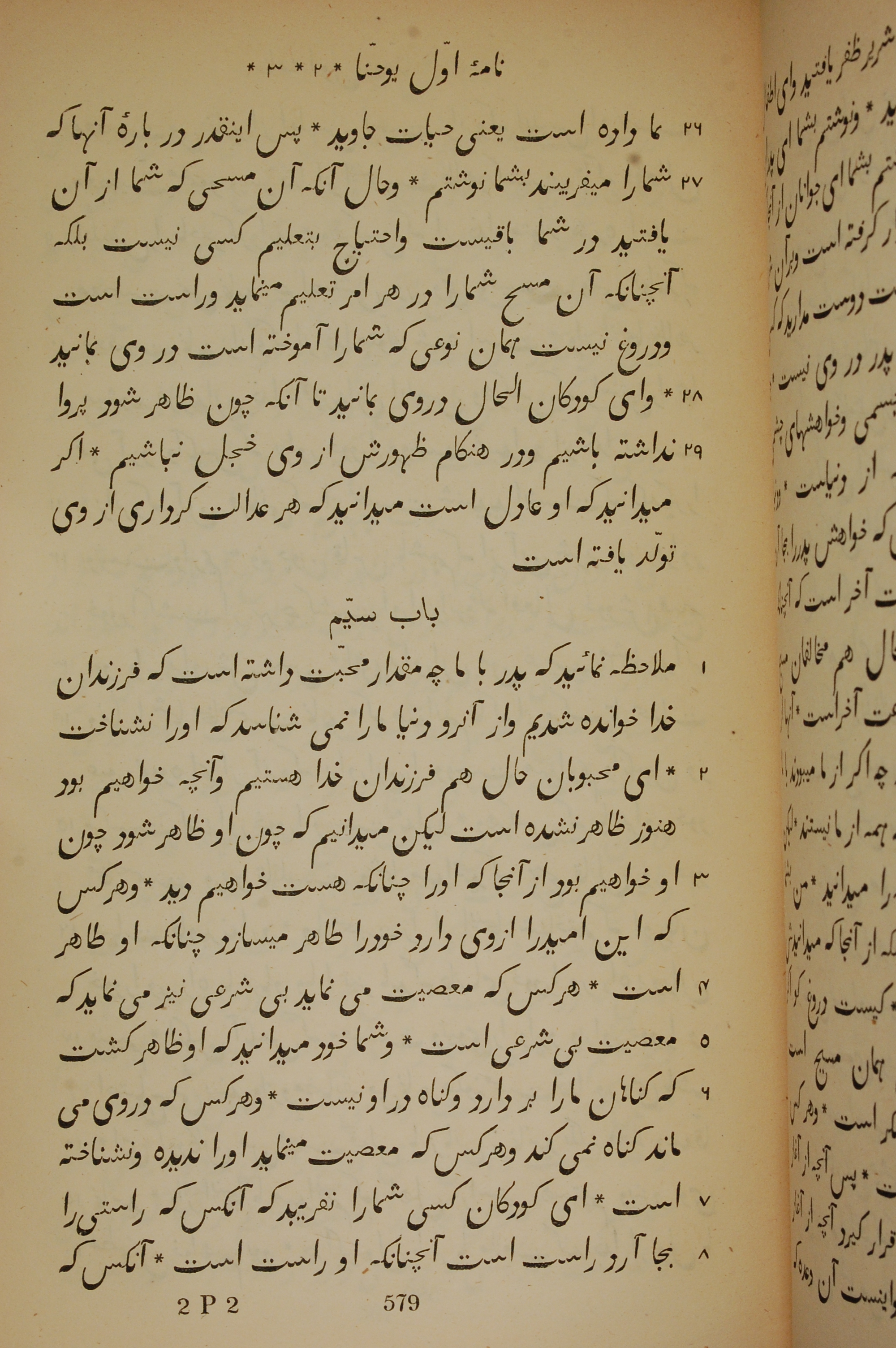 1837年New Testament Translated From the Original Greek into Persian 約翰一書 2 章 26 節到 3 章 8 節