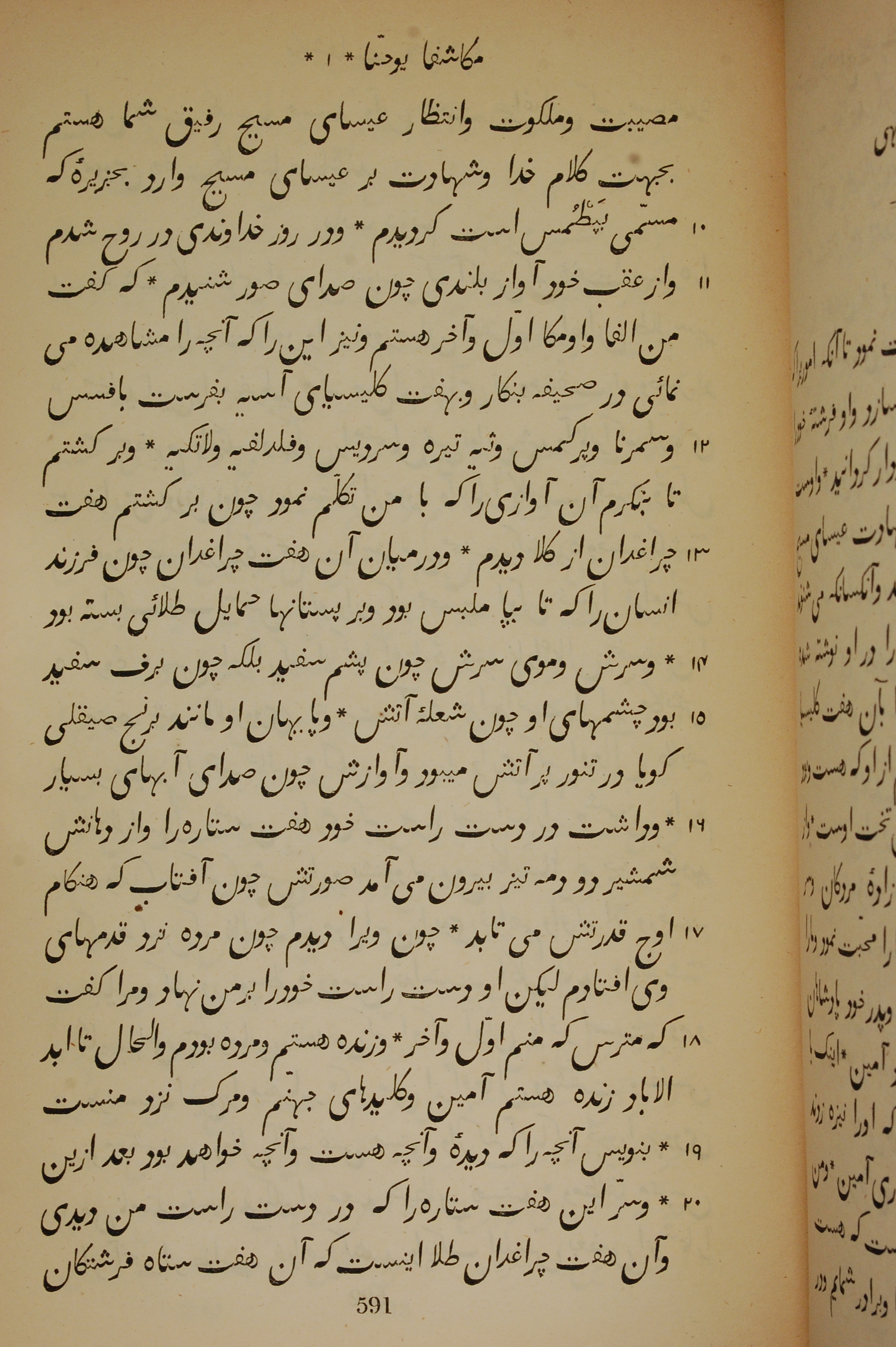 1837年New Testament Translated From the Original Greek into Persian 啟示錄 1 章 10 節到 1 章 20 節