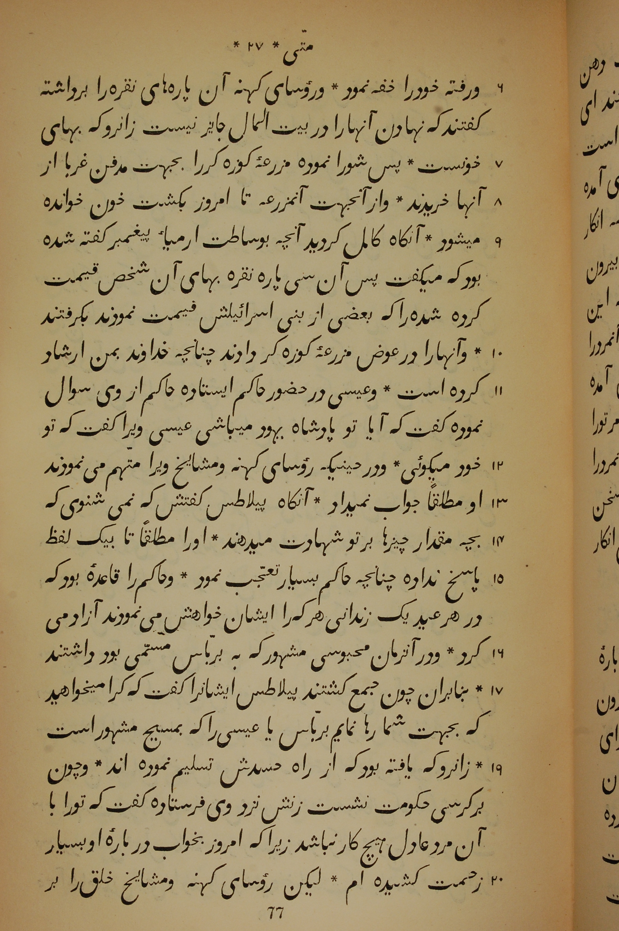 1837年New Testament Translated From the Original Greek into Persian 馬太福音 27 章 6 節到 27 章 20 節