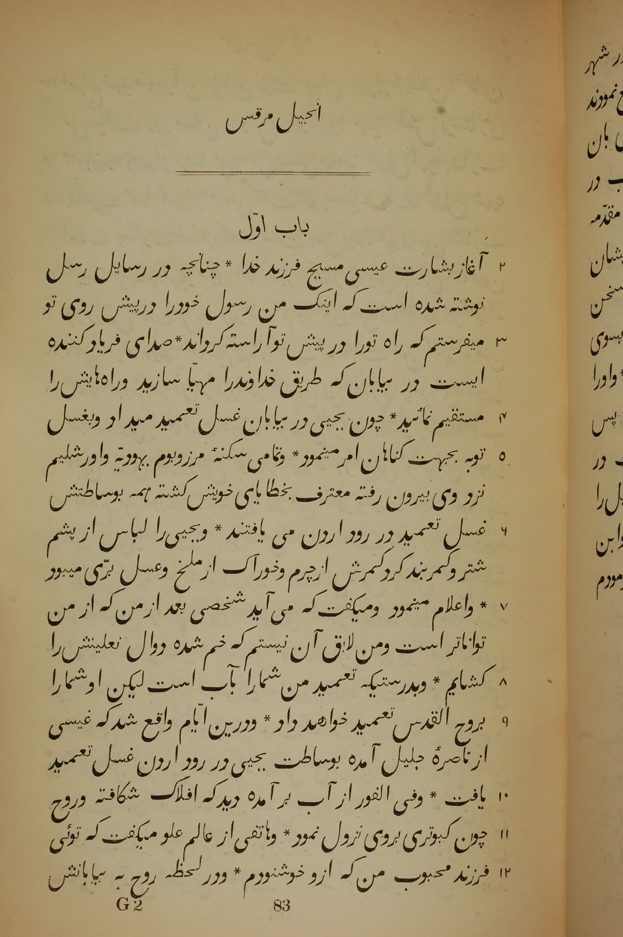 1837年New Testament Translated From the Original Greek into Persian 馬可福音 1 章 1 節到 1 章 12 節