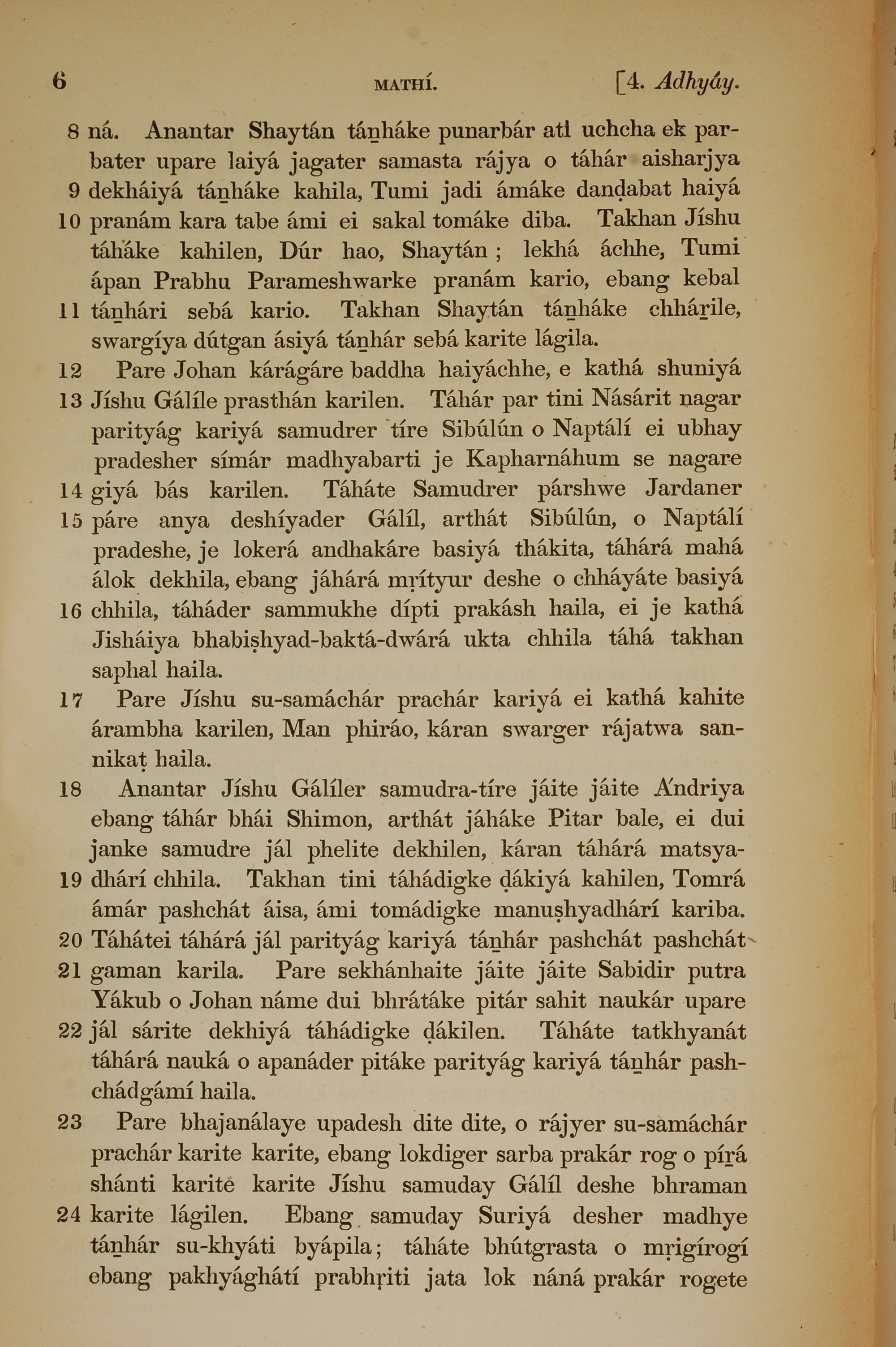 1839年孟加拉語新約全書 馬太福音 4 章 8 節到 4 章 24 節