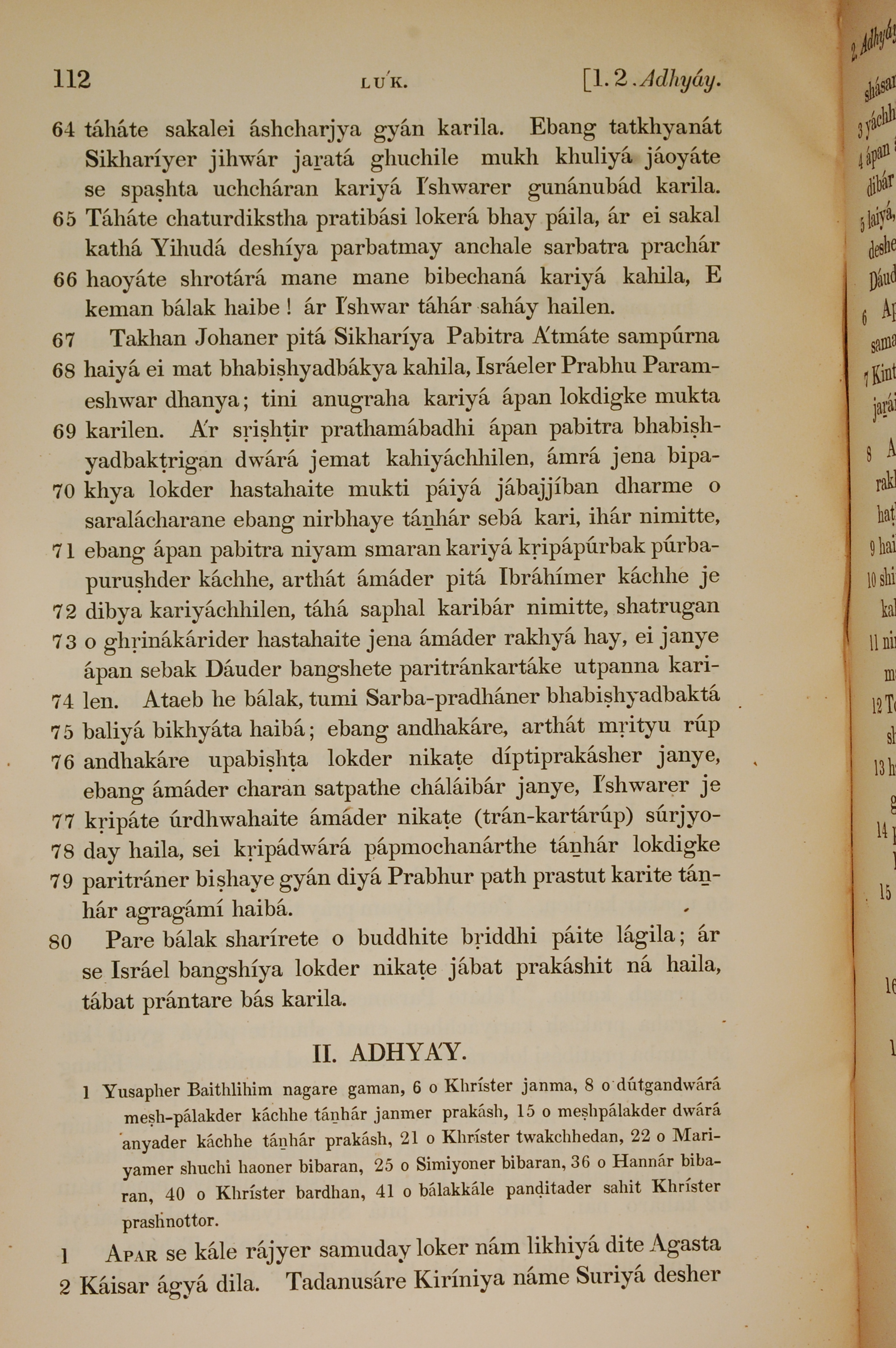 1839年孟加拉語新約全書 路加福音 1 章 64 節到 2 章 2 節