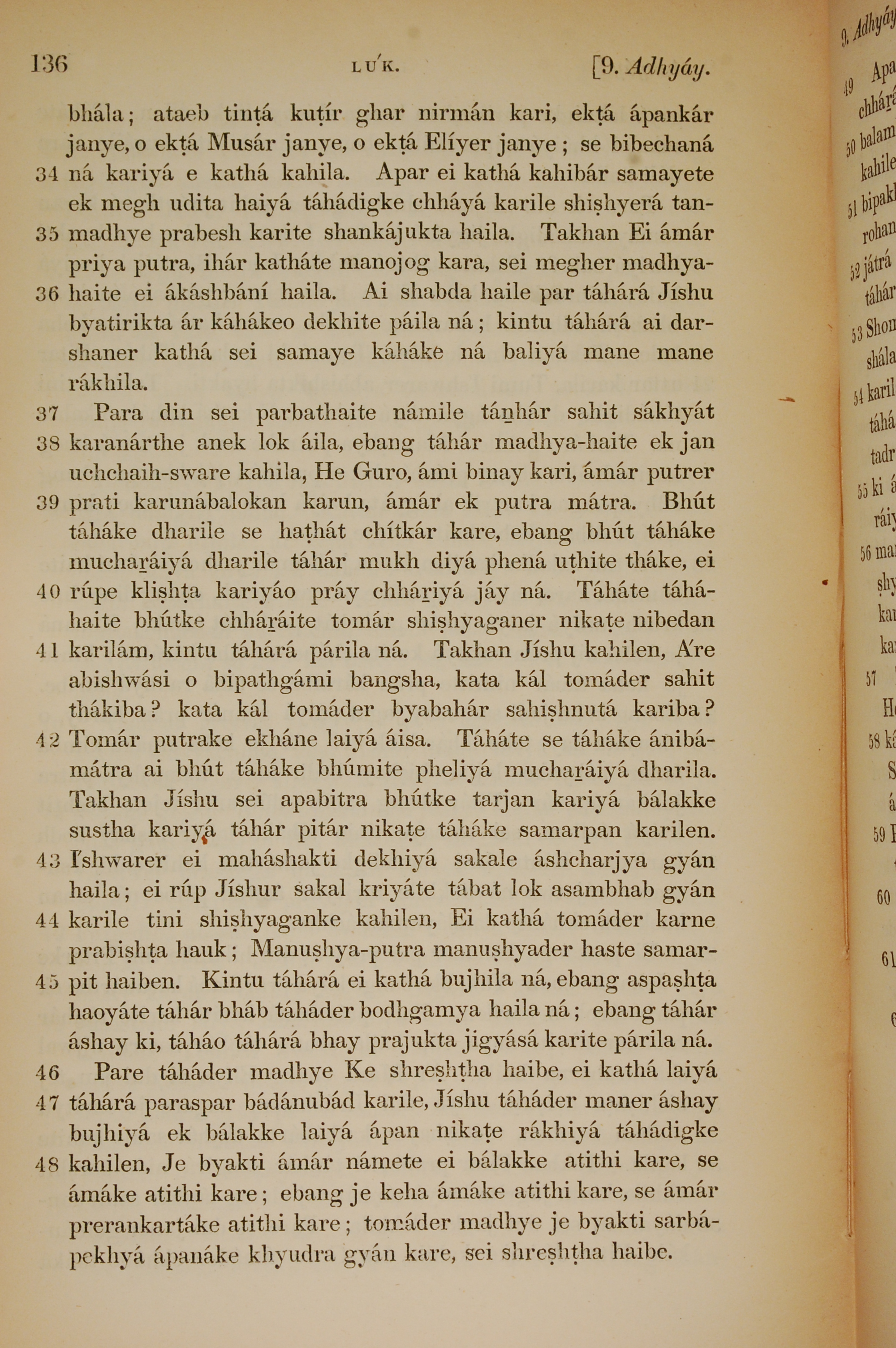 1839年孟加拉語新約全書 路加福音 9 章 34 節到 9 章 48 節