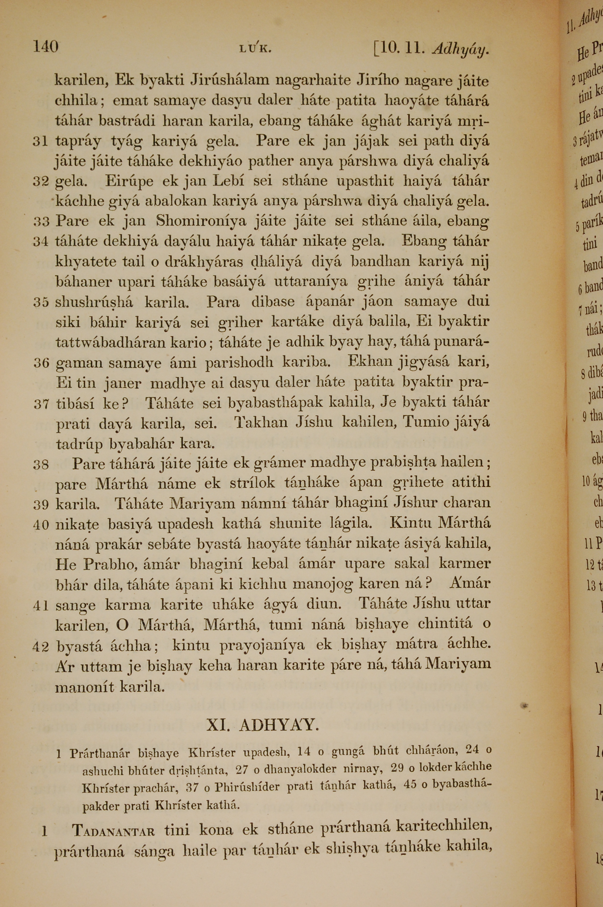 1839年孟加拉語新約全書 路加福音 10 章 31 節到 11 章 1 節