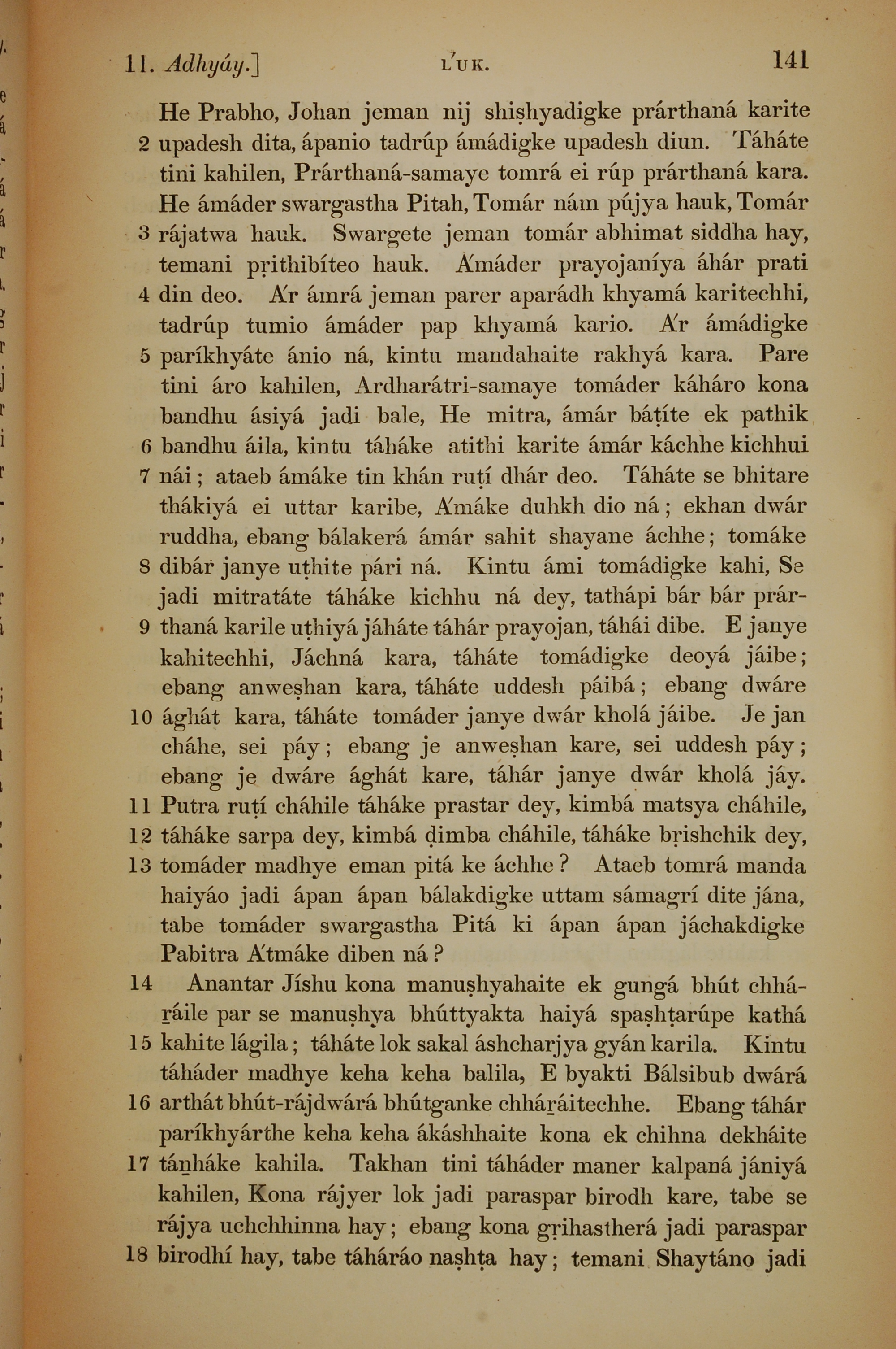 1839年孟加拉語新約全書 路加福音 11 章 2 節到 11 章 18 節