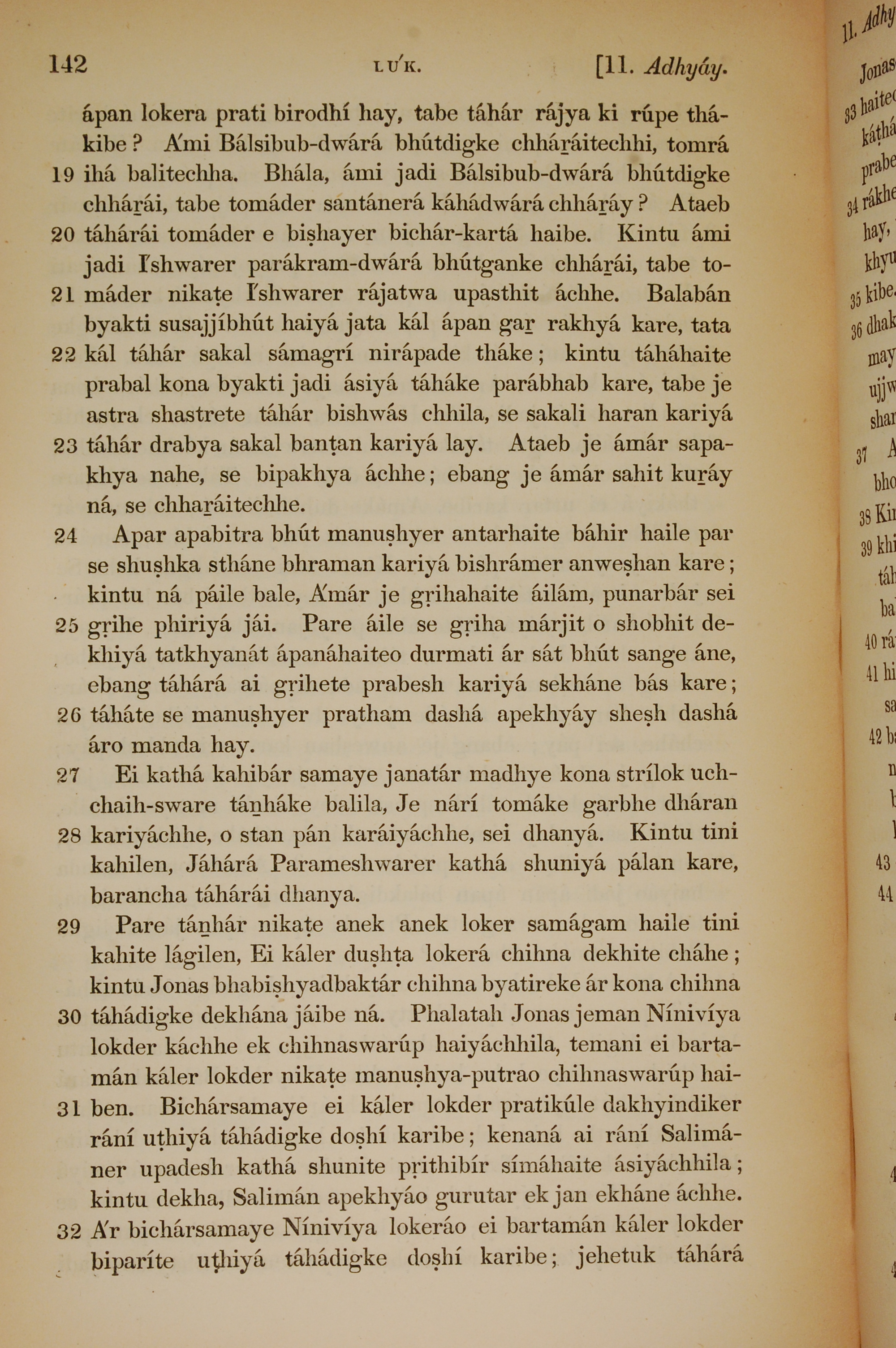 1839年孟加拉語新約全書 路加福音 11 章 19 節到 11 章 32 節