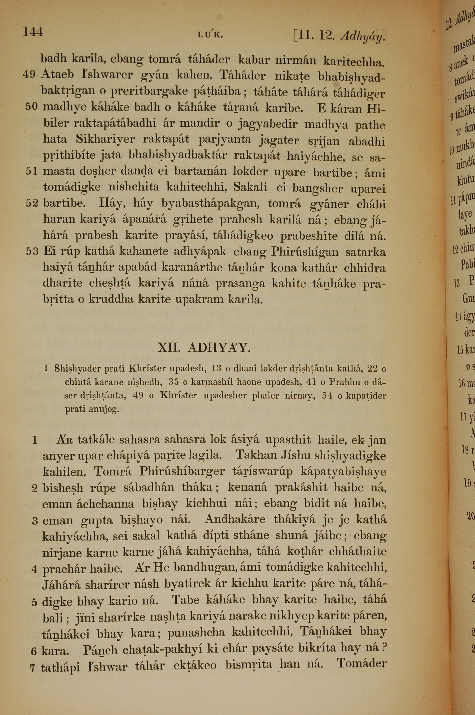 1839年孟加拉語新約全書 路加福音 11 章 49 節到 12 章 7 節