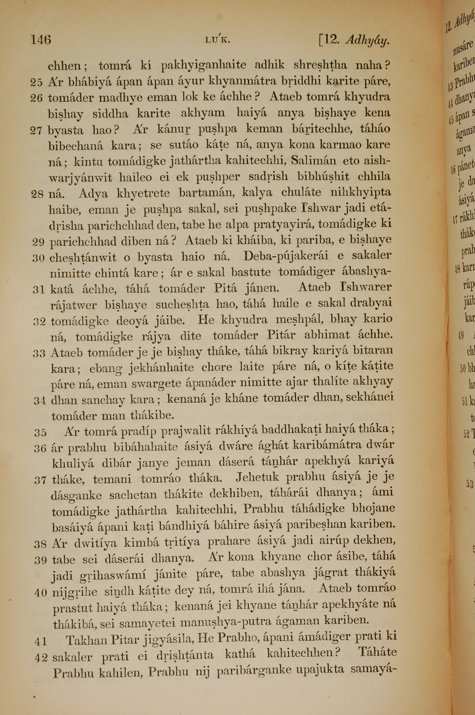 1839年孟加拉語新約全書 路加福音 12 章 25 節到 12 章 42 節