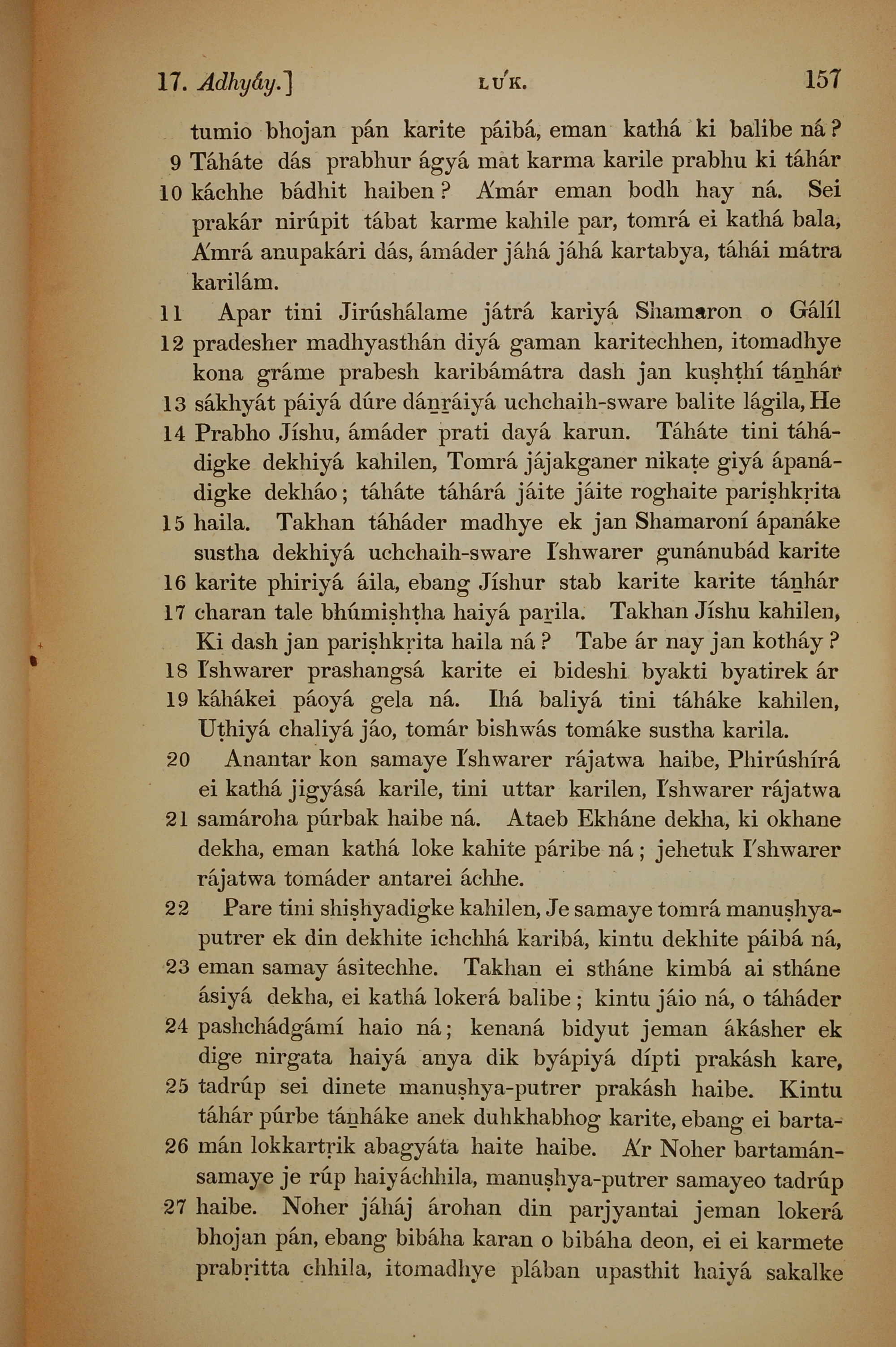 1839年孟加拉語新約全書 路加福音 17 章 9 節到 17 章 27 節