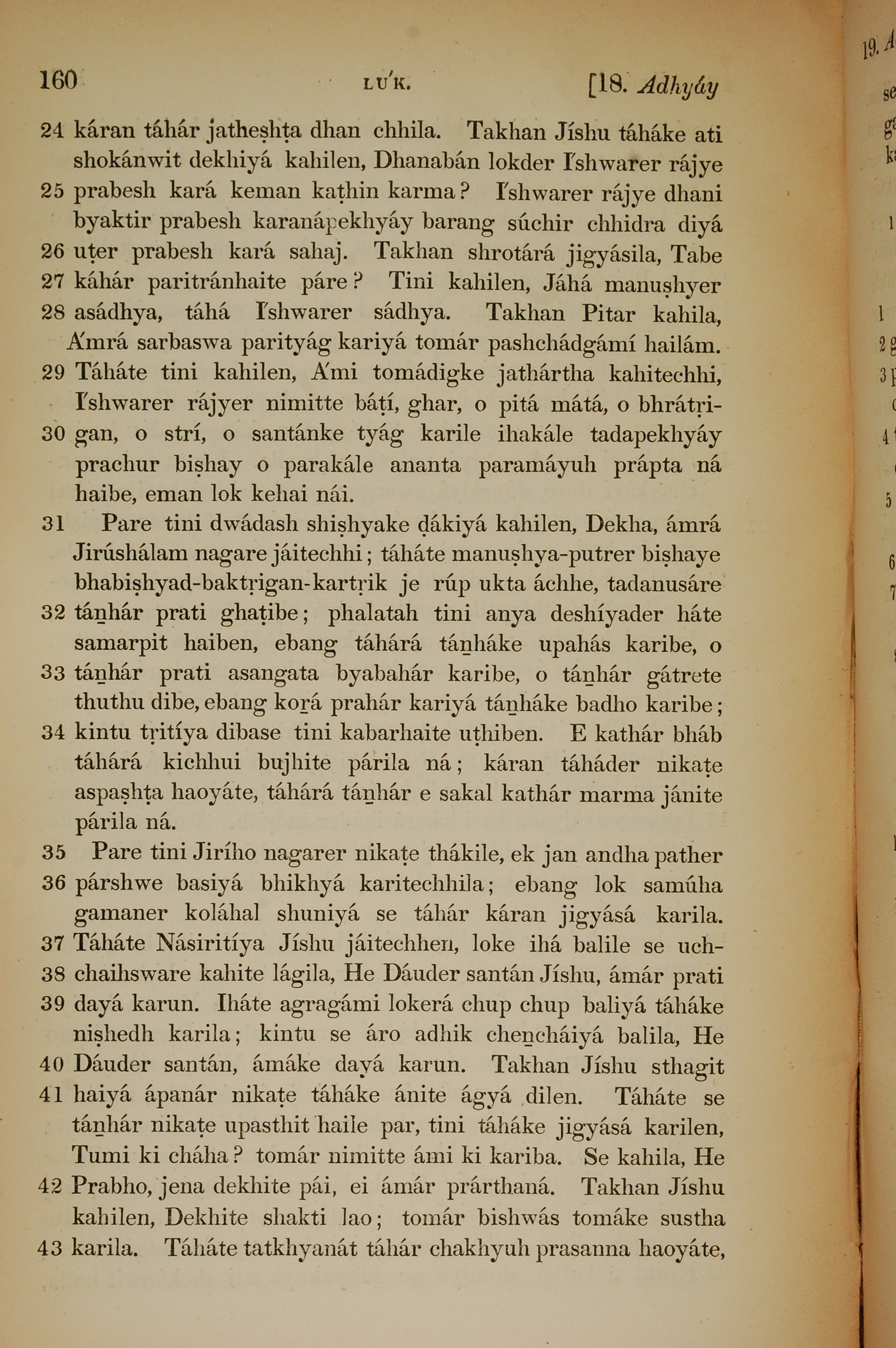 1839年孟加拉語新約全書 路加福音 18 章 24 節到 18 章 43 節