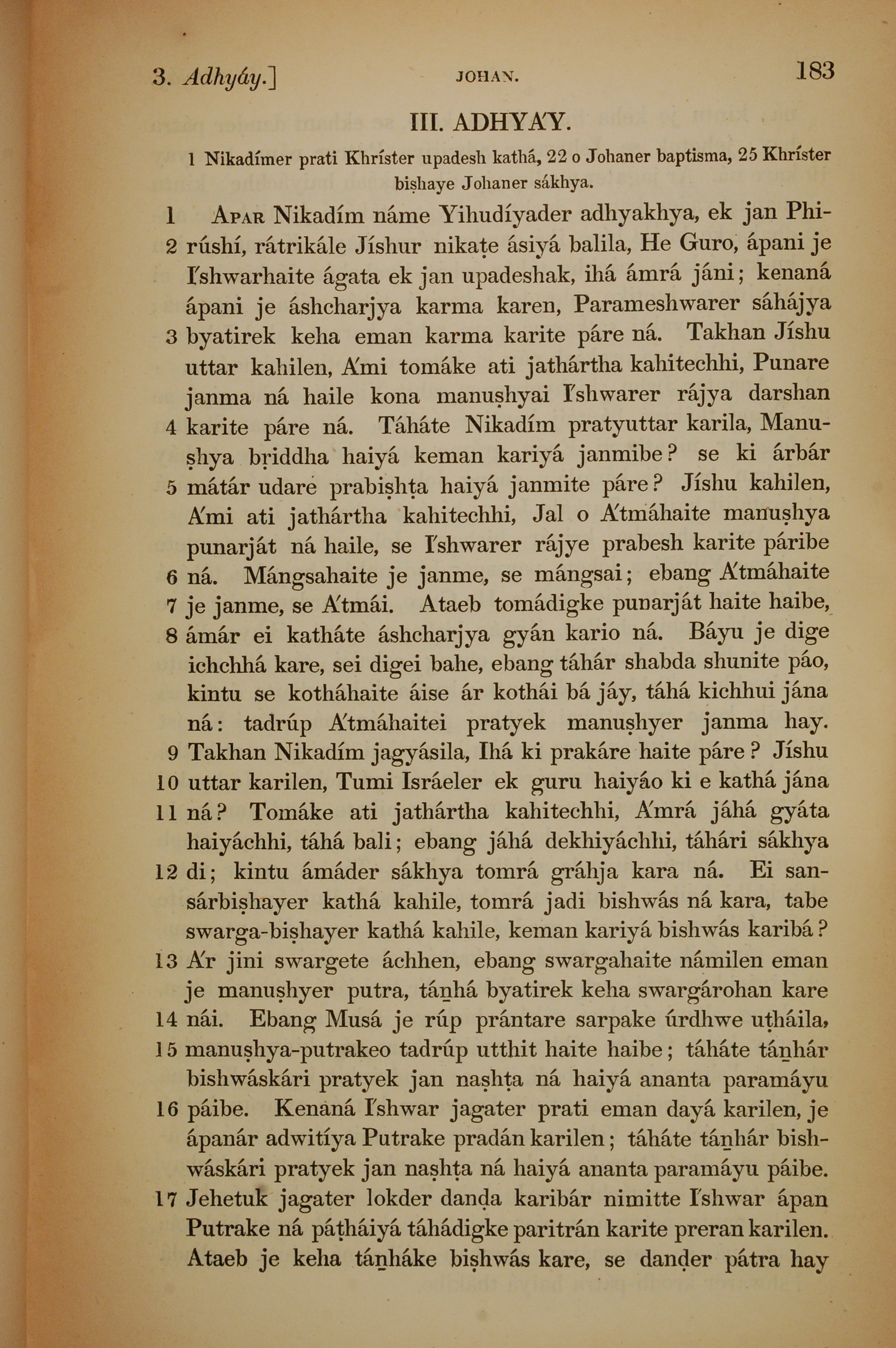 1839年孟加拉語新約全書 約翰福音 3 章 1 節到 3 章 18 節