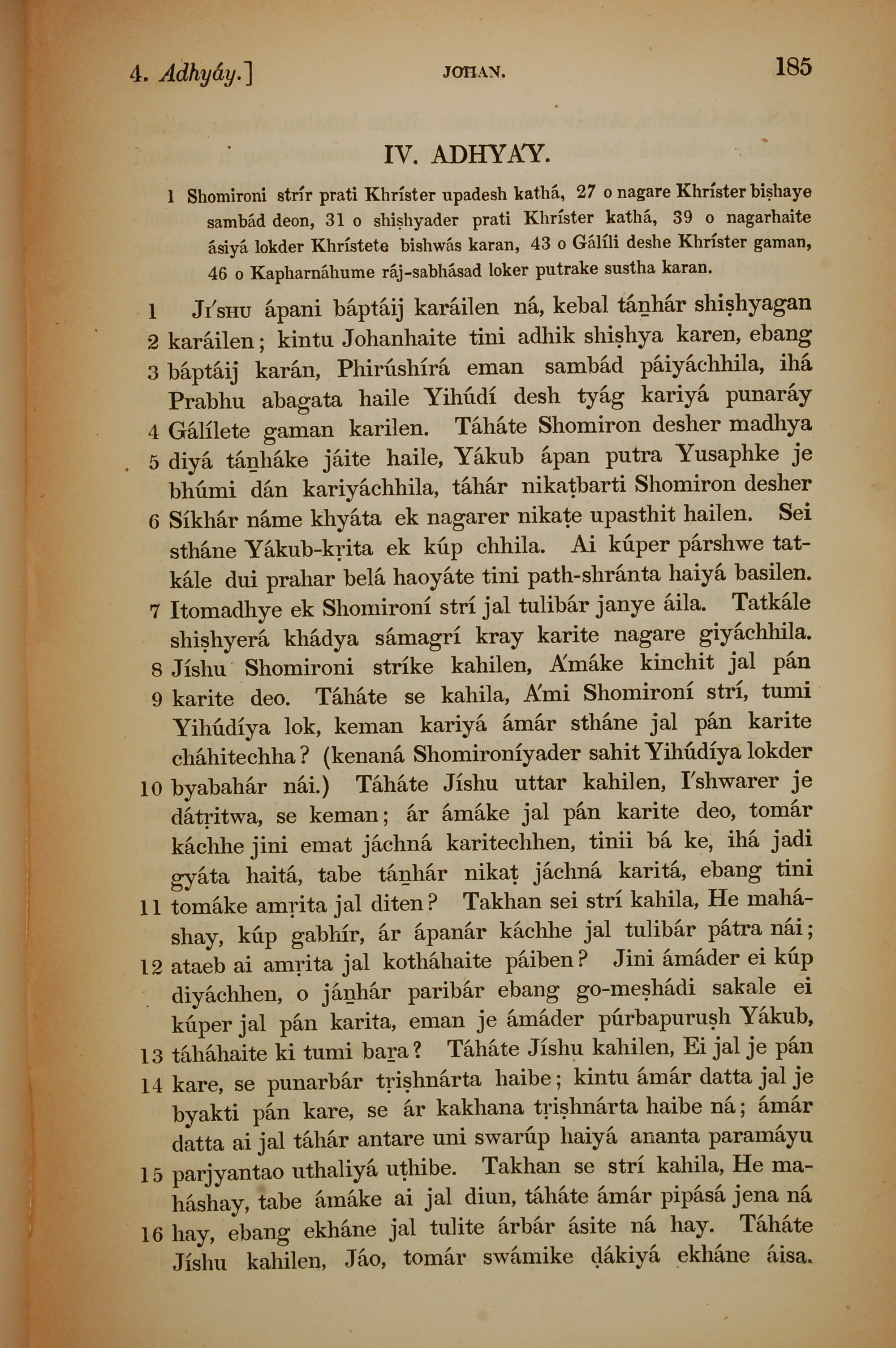 1839年孟加拉語新約全書 約翰福音 4 章 1 節到 4 章 16 節