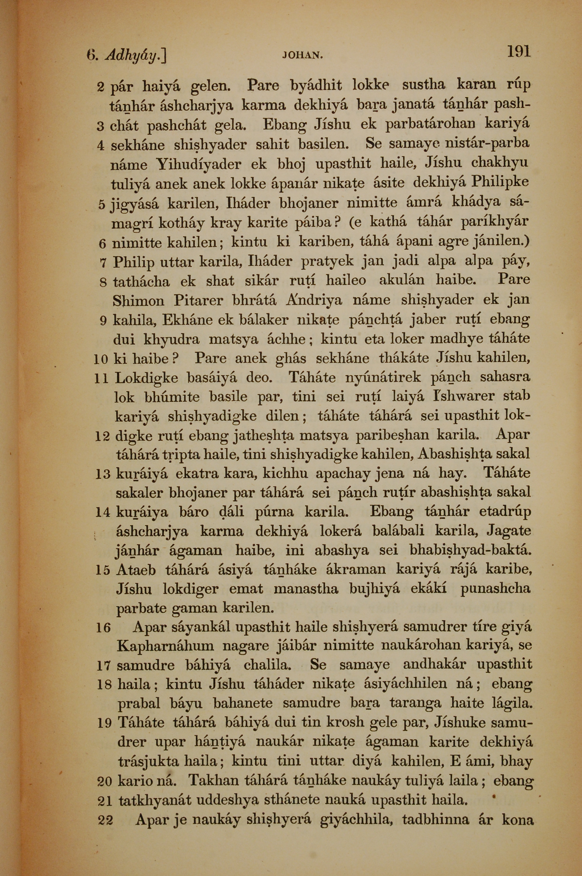 1839年孟加拉語新約全書 約翰福音 6 章 2 節到 6 章 22 節