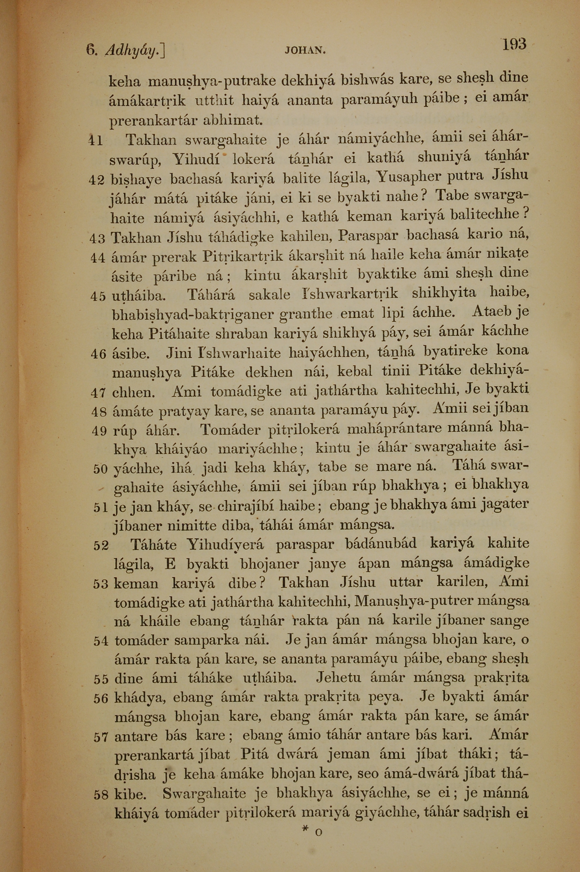 1839年孟加拉語新約全書 約翰福音 6 章 41 節到 6 章 58 節