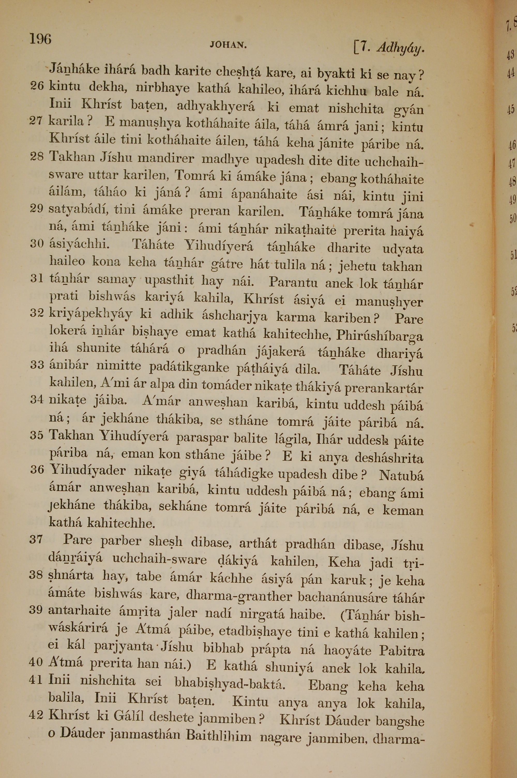 1839年孟加拉語新約全書 約翰福音 7 章 26 節到 7 章 42 節